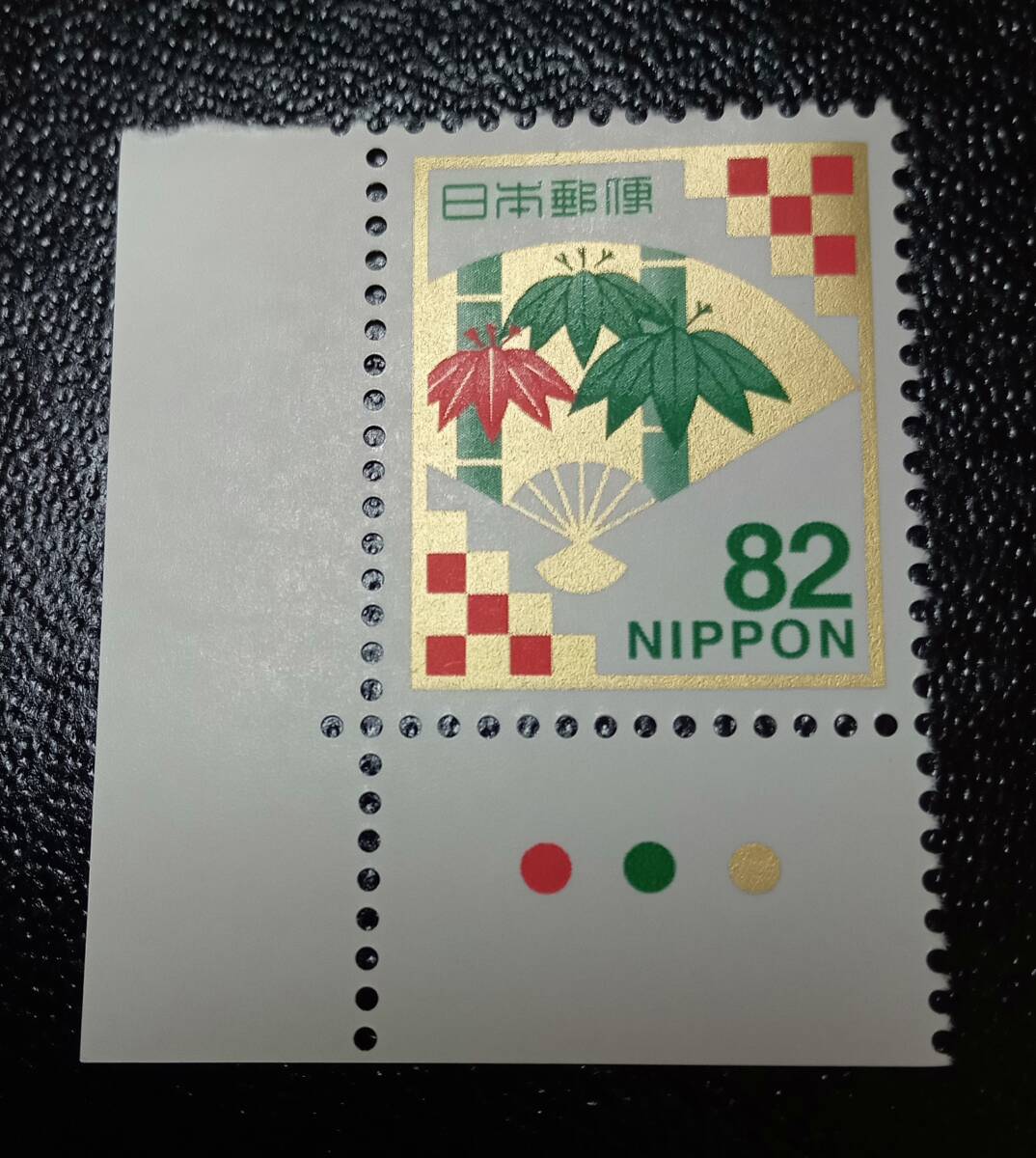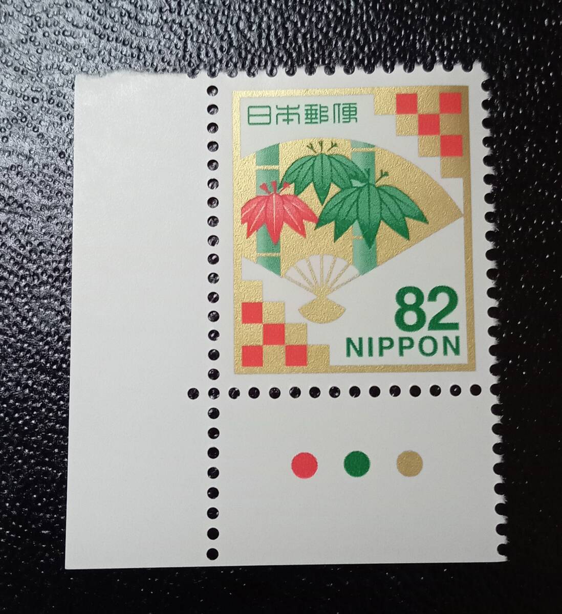 慶弔切手 慶事用 扇面に竹文様 82円 未使用 カラーマーク付き 2014年