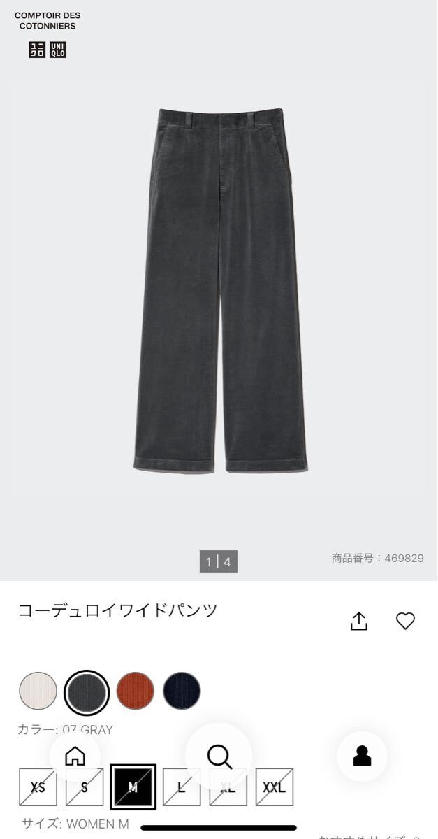 ユニクロ × コントワーデコトニエ 2024AW                        コーデュロイワイドパンツ サイズM グレー