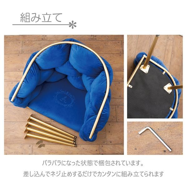 上品なデザインで、手触りの良いベルベット生地を使用しております。 座面中央にはそれぞれカラーごとに異なったアルファベットの刺繍が入っております。 お部屋のインテリアとしても、お客様用のイスとしてもとってもオシャレなアイテム。 組み立てはカンタン! 六角レンチが付属しておりますので足を取り付けるだけです。 |