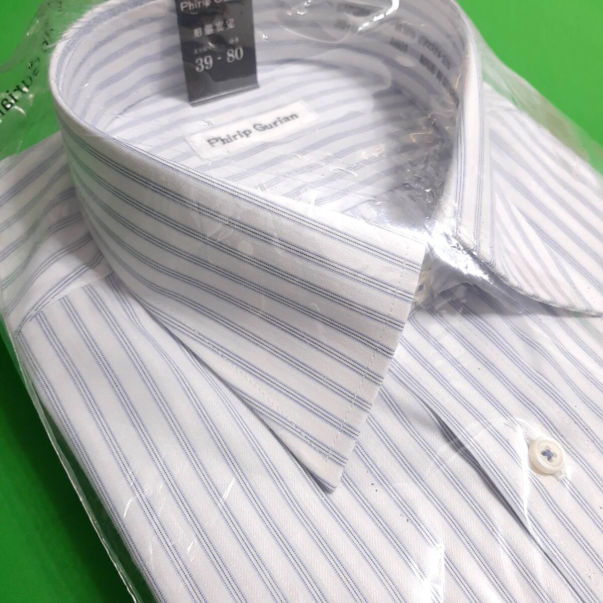 g5新品★M 首回り39-80★形態安定加工 長袖 Yシャツ ドレスシャツ デザインシャツ 通勤 メンズ ブルーストライプ柄 ビジネスシャツ