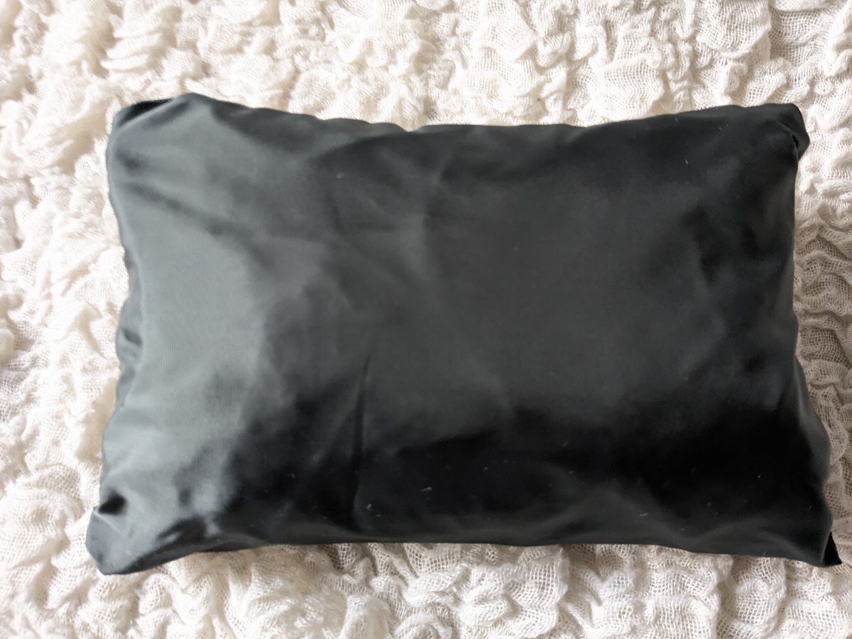 ナイロンポーチの内側から収納袋が出てきます。四角いポーチぽくなります。