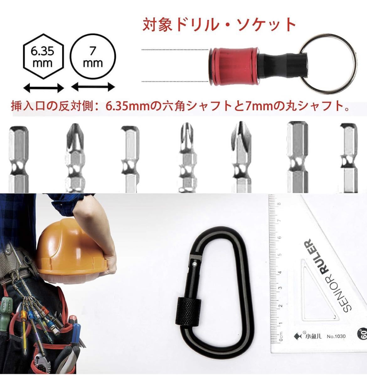 ポータブルドライバービットホルダー 6色スーツ キーホルダータイプ 引き上式 ストレージ ソケットブラケット フロントエンドツール ドライバービットホルダー ドリル アダプタ… (6) (6本セット)