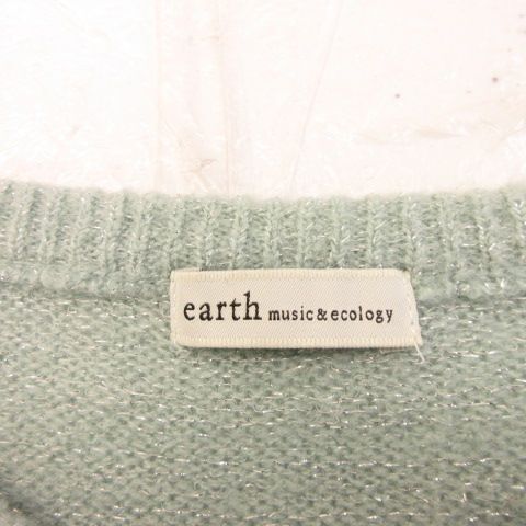 アースミュージック&エコロジー EARTH MUSIC & ECOLOGY ニット セーター 長袖 青 ミント F *A634 レディース