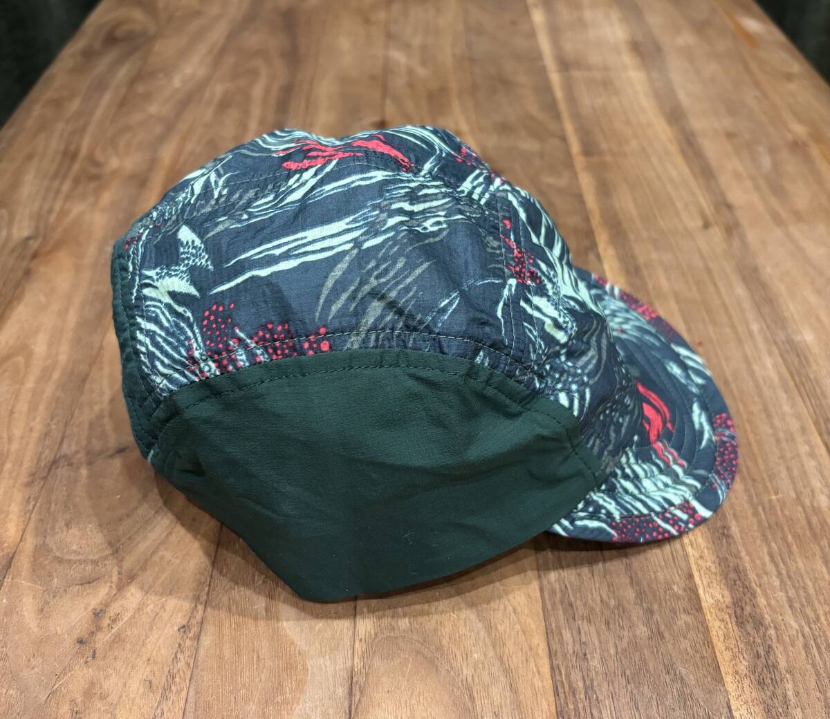 ・素材無地の本体とつば:1.2オンス・リッフストッフ・リサイクル・ナイロン100%。DWR(耐久性撥水)加工済み。サイドハネル:メカニカル・ストレッチ織りの1.9オンス・リッフストッフ・リサイクル・ポリエステル100%。DWR加工済み。バックハネル:吸湿発散性を備えた4.2オンス・ナイロン79%/ホリウレタン21%のジャージー。ポリジン永続的防臭加工済み。バックパネルはブルーサインの認証済み