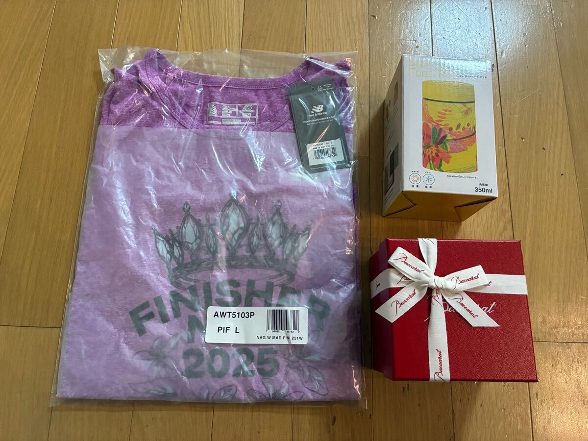 ウィメンズマラソン2025の完走賞の3点セットです。