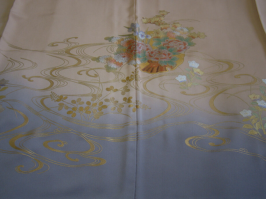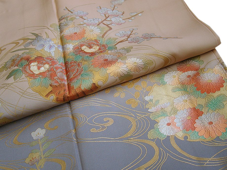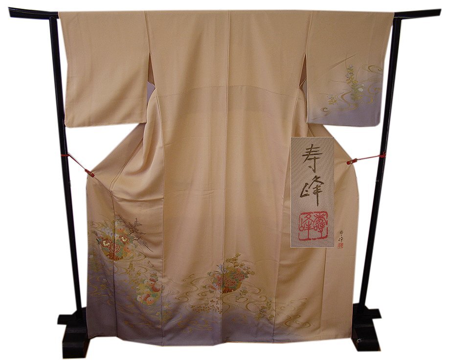 | 商品説明 | こちらのお品は「袷」ですので10月から5月までお召頂ければと思います。 とてもしなやかで柔らかな手触りの着心地良い重めの上質な極上一越地の生地、 飴色地に裾にかけて渋い藤鼠色ぼかしに流水、雪輪文に花草柄の金彩加工染に螺鈿入り、 気品に満ち溢れた彩りが正統派のお着物として一枚は欲しい逸品の素敵なお着物です。 八掛は共布に柄入り(正絹)、作家の落款入り、幅広い年代の方にお召頂けます。 |