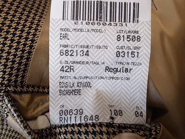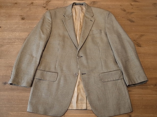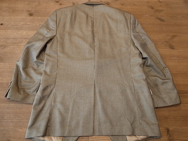 ◆ブランド 「Patrick James」 アメリカ古着 ●サイズ表記 42R 実寸サイズ XL相当 肩幅…49cm(肩先から肩先の間の長さ) 身幅…58cm(両脇を横直線に結んだ長さ) 着丈…80cm(後衿ぐり中央から後身頃裾) 袖丈…61cm(袖付けの肩先から袖先) ※平置き状態での素人採寸ですので、多少の誤差はご了承ください。 ●素材…52%SILK 48%WOOL ”Carlanda”イタリア生地 オールシーズン対応 ●色…黒×ベージュ 千鳥格子ピンチェック ●ポケット… フラップポケット ●裏地…総裏仕立て ●ベント…センターベント ●製造国表記…CANADA ●状態…使用感は少ない美品です。 ★送料 全国一律 700円 佐川急便 (北海道900円 沖縄その他離島1700円) ※複数ご購入の場合、同梱発送可能です。 |
