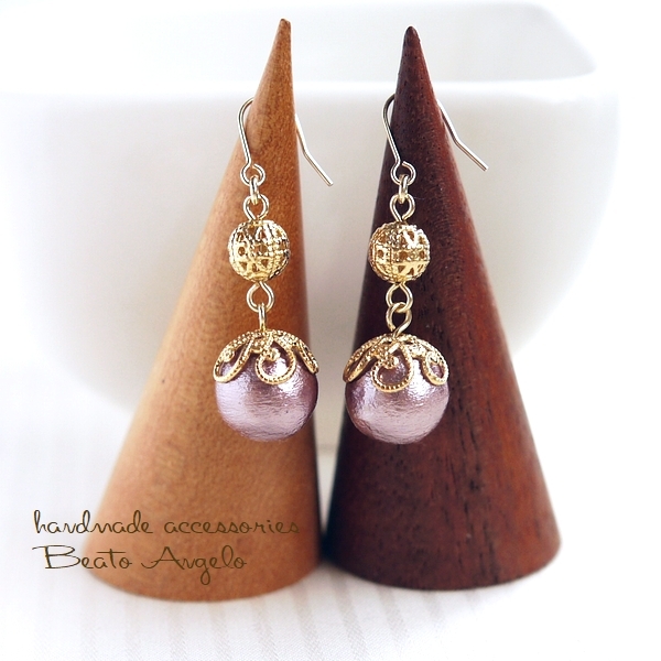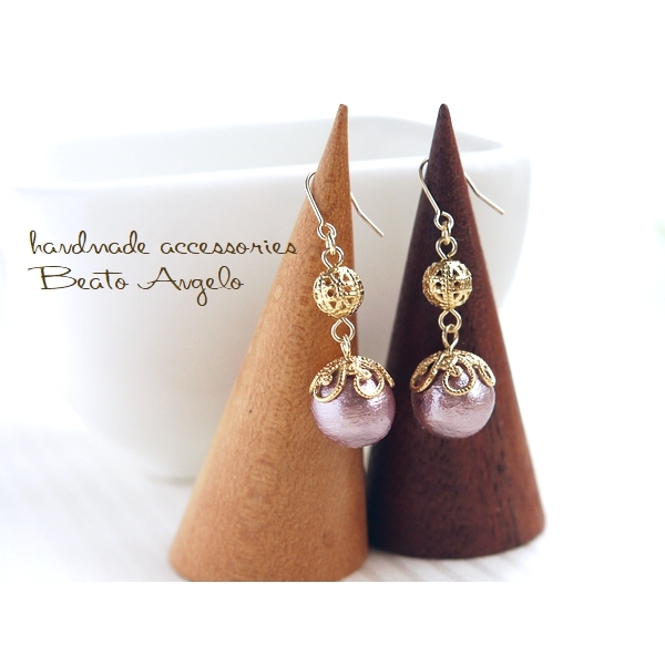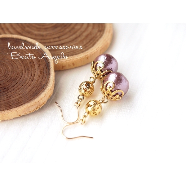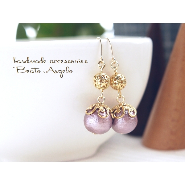 ◇◇+angelo+コットンパールと透かし玉のピアス(p-452)パープル G 10mm 花座