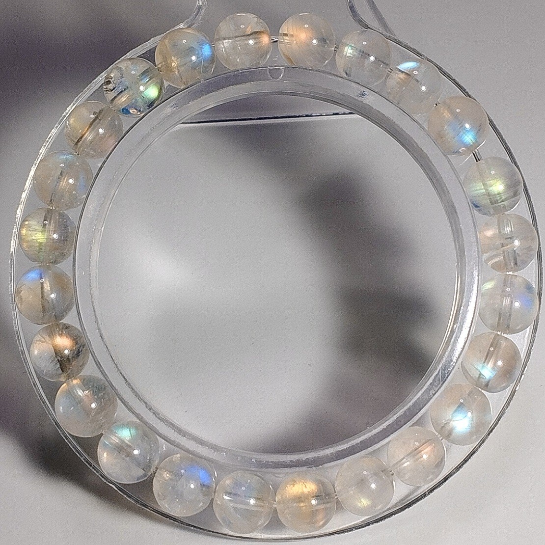 青・緑・黄色・オレンジなどカラフルな各色のシラーがきれいなムーンストーン(ホワイトラブラドライト)です。