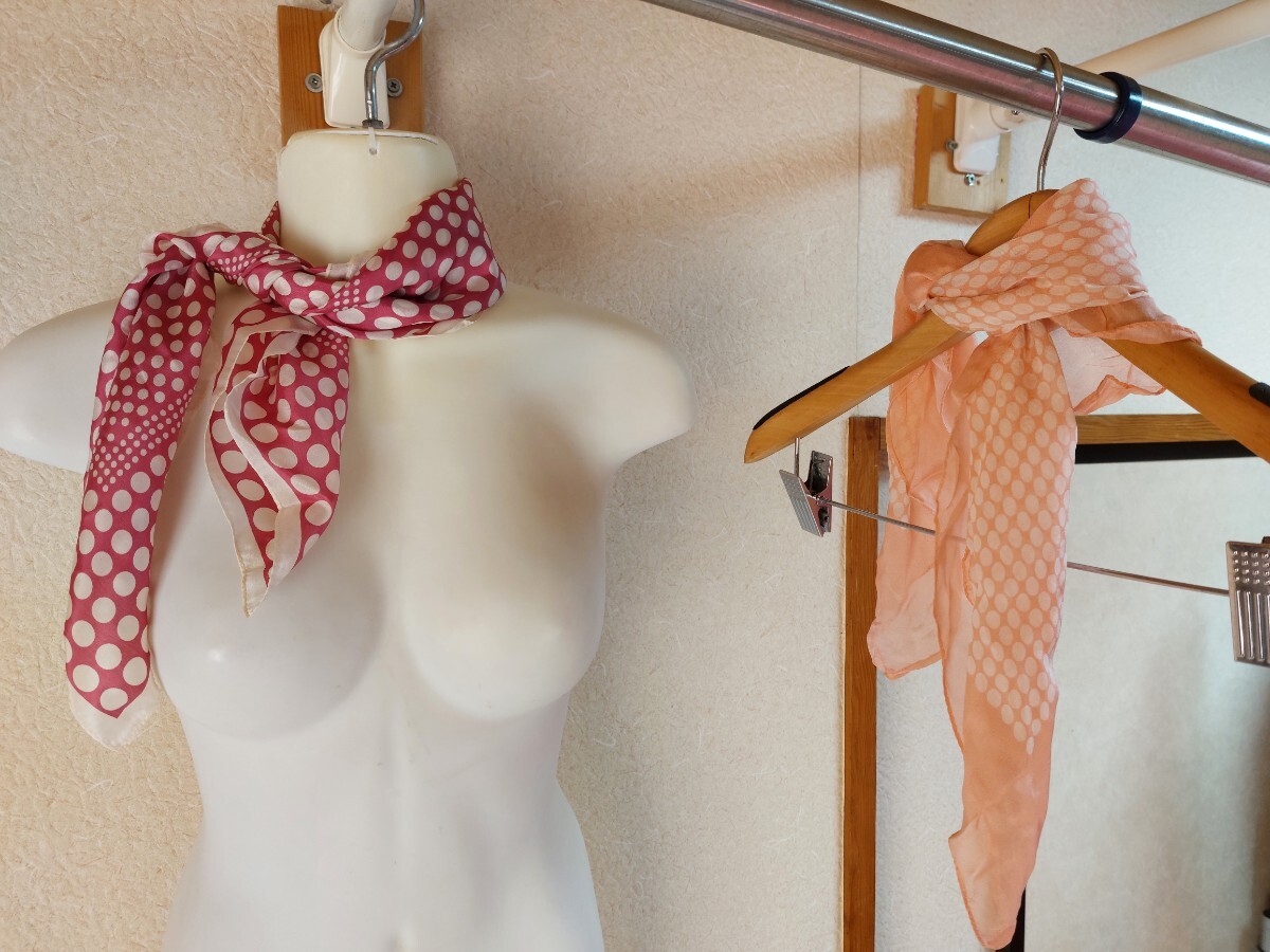 | 2点セット◆ピンク系ドット柄スカーフ◆シェロー | |