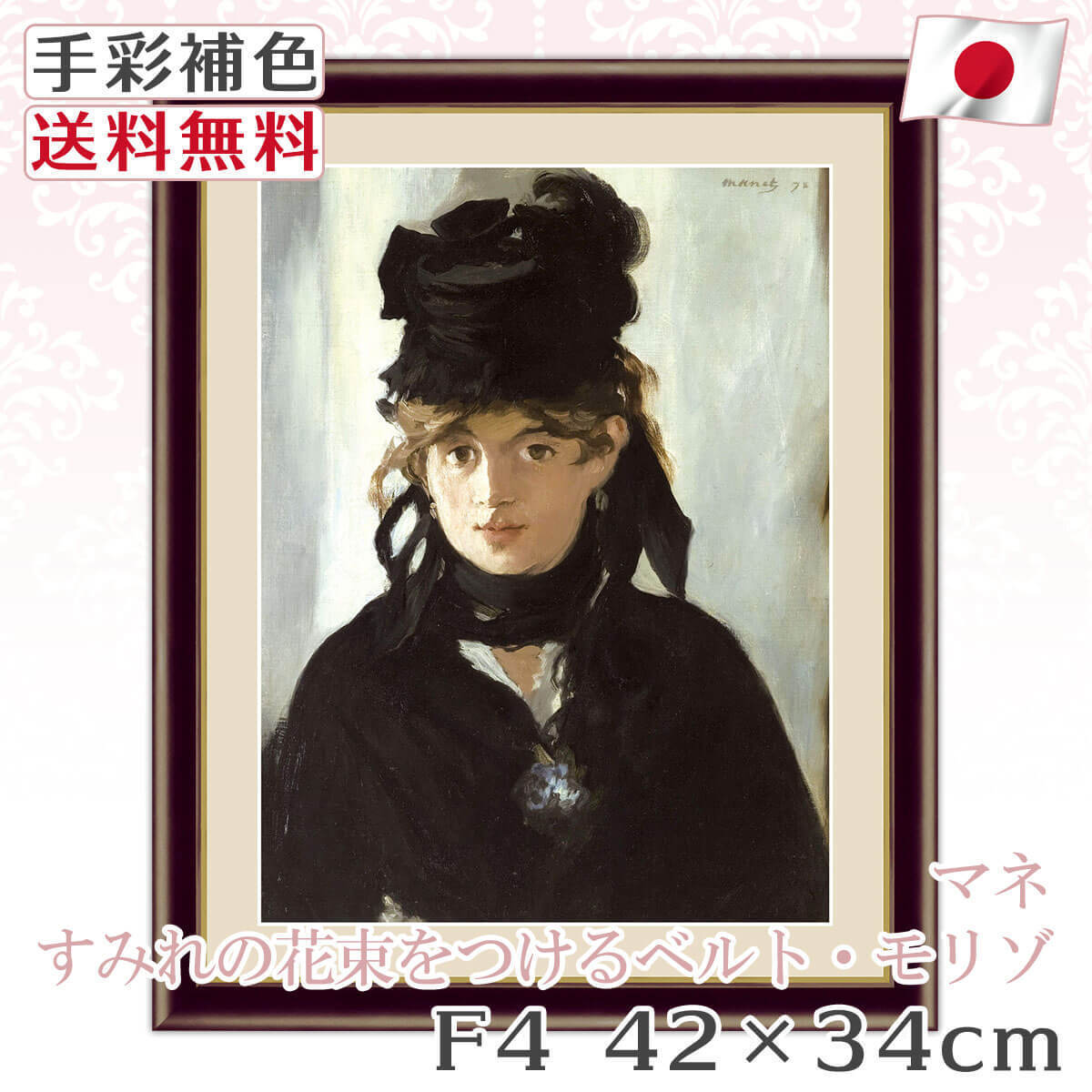 マネ 作品 名画 すみれの花束をつけるベルト・モリゾ F4 42*34cm インテリア 有名 壁掛け 北欧 玄関 おしゃれ