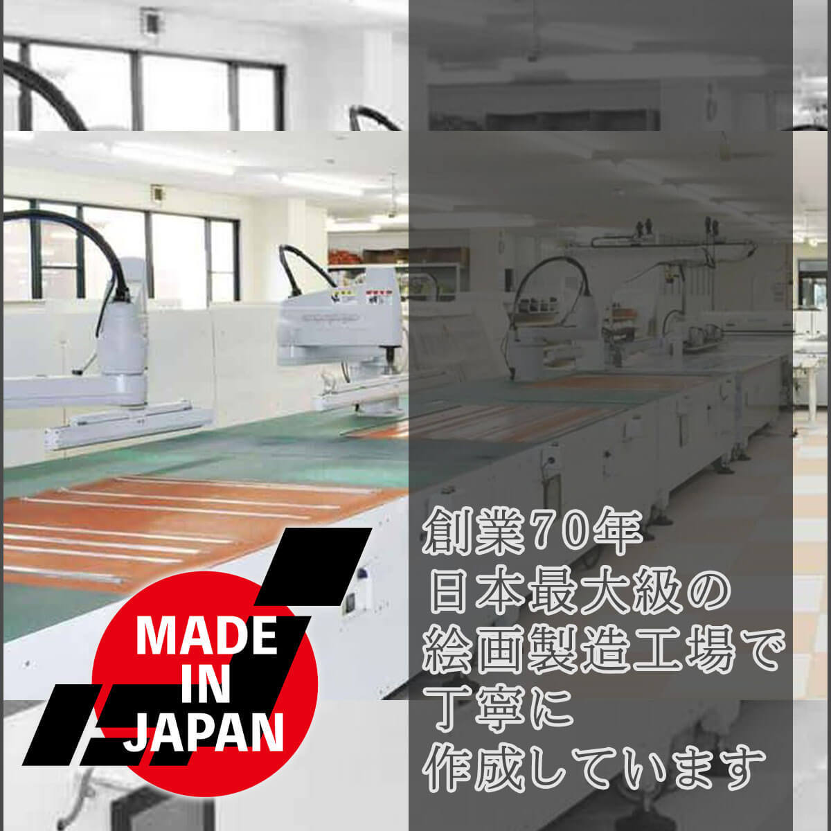 世界の有名 美術館 が レプリカ を制作するため採用している最先端ジグレ版画技法で特性新絹本画布に表現し、最終仕上げは手彩による補色( 手彩補色 )が加えられ、リアルな雰囲気を醸し出しています。光や空気中のオゾンなどに分解されにくい 対候性 を備えており、時間がたっても色調が変化しにくく、美しさが変わりません。