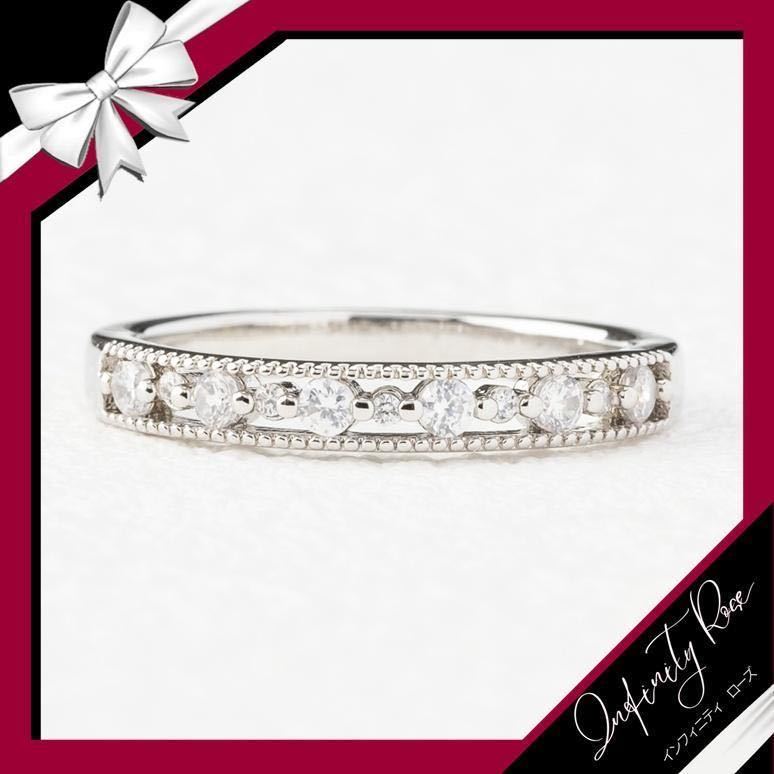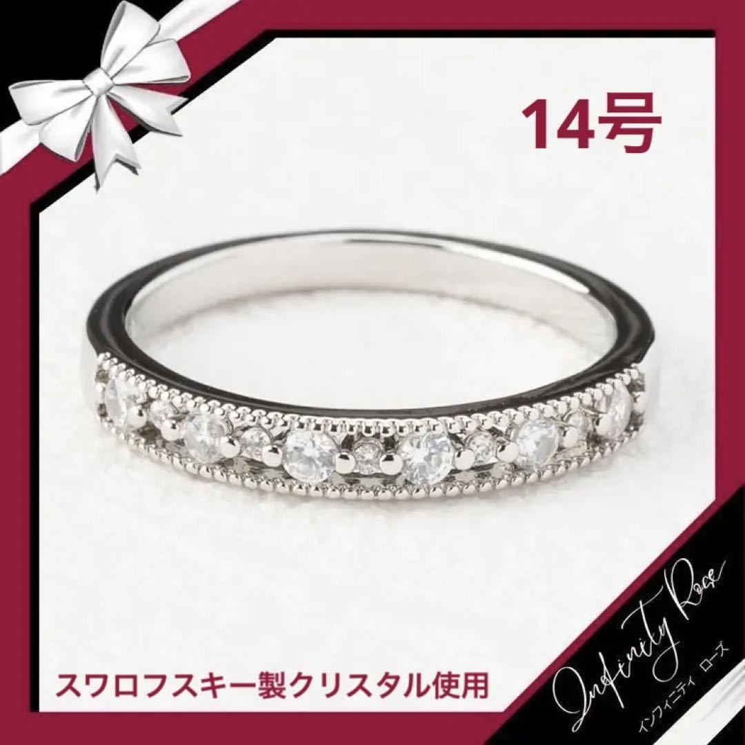 (R036S)14号 シルバー清楚で可愛らしいデザインリング 高価爪留め仕様指輪 スワロフスキー製クリスタル使用