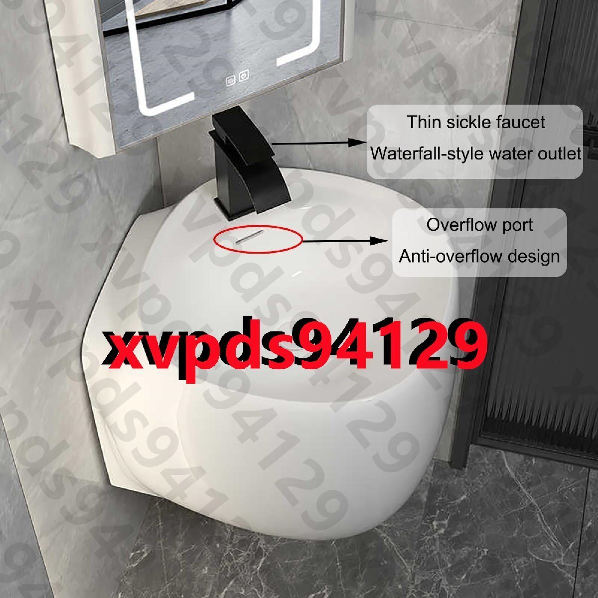 手洗い器、洗面化粧台 蛇口付き 、小さなバスルームコーナーバスルームシンク、セラミックシンクとミラーキャビネット付きコーナー洗面台、耐久性があり、お手入れが簡単