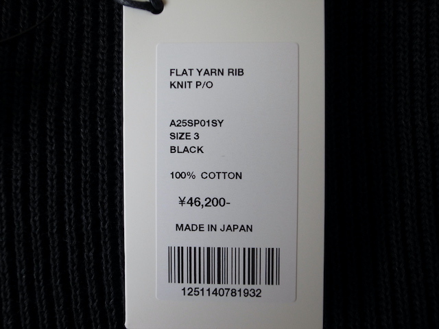 ★新品 未使用 2025 AURALEE FLAT YARN RIB KNIT P/O BLACK サイズ3 オーラリー フラット ヤーン リブ ニット ブラック