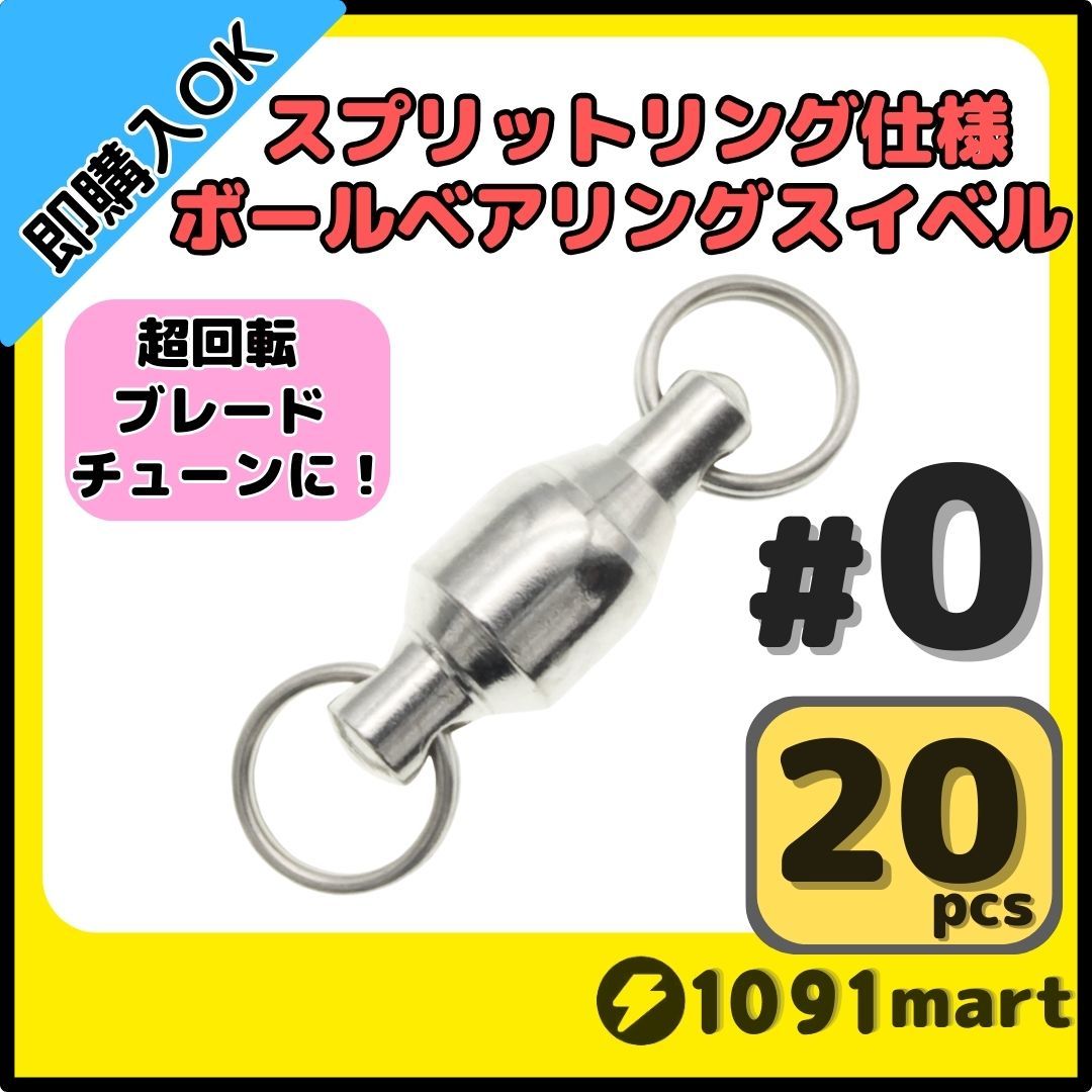 【送料無料】ボールベアリングスイベル スプリットリング仕様 #0 20個セット ジグスピナースピナーベイトスピンテールブレードチューンに!
