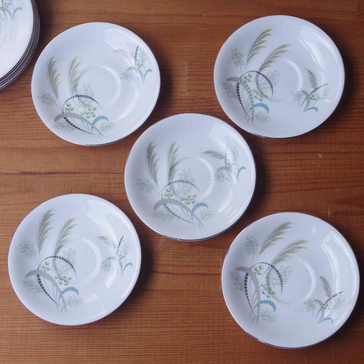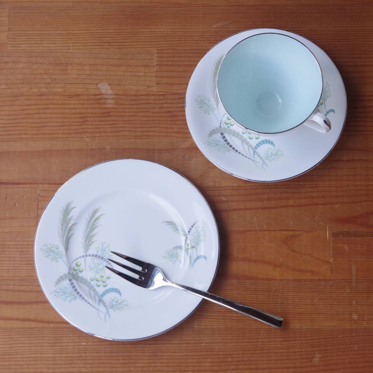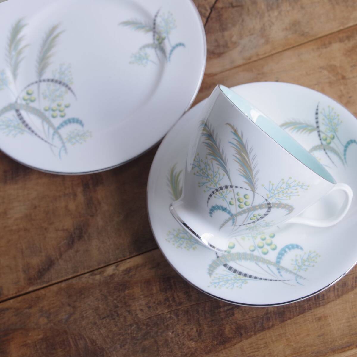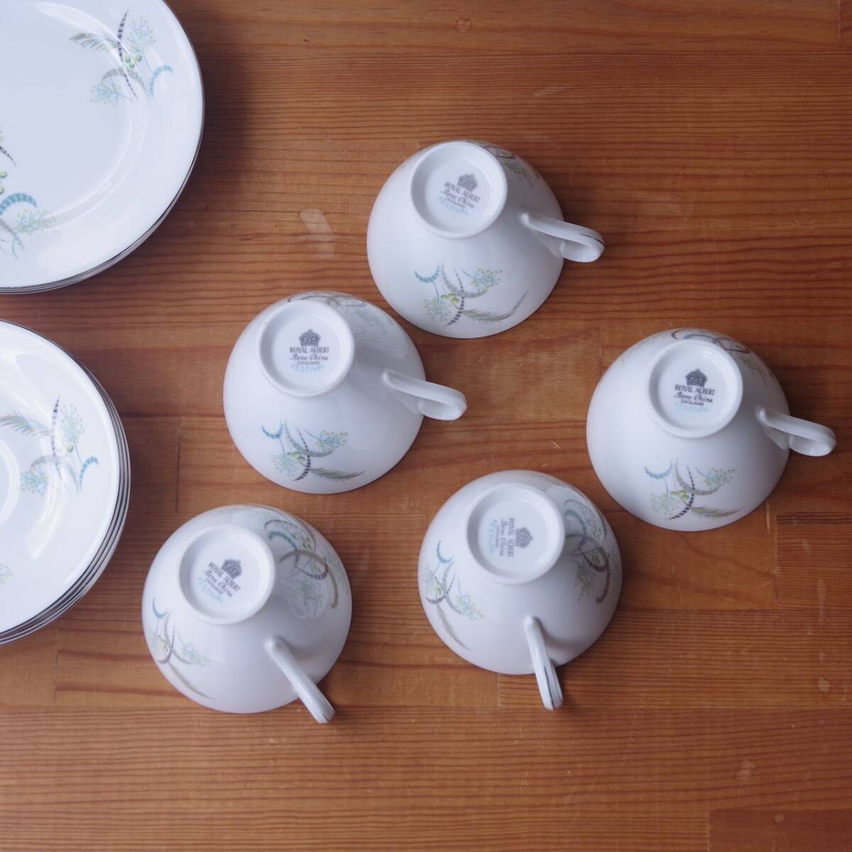 ロイヤルアルバート Festival コーヒーカップ ソーサー デザートプレート トリオ ヴィンテージ 食器 陶器 #250307-1~5 レトロ グリーン