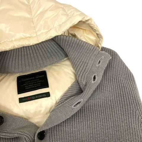 ナノユニバース nano universe ×Tokyo Nishikawa ダウンジャケット ドッキング ウール混 フェザー混 長袖 L グレー ホワイト メンズ