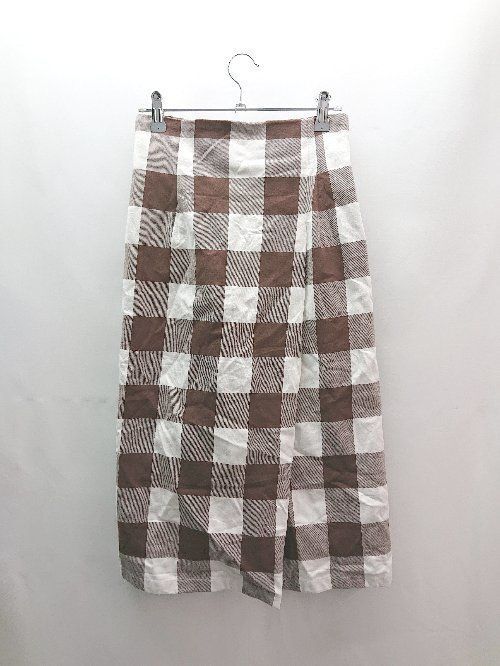 ◇ ROPE PICNIC チェック柄 裏地 ウエストゴム バックジップ ロング丈 タイト スカート サイズ36 ブラウン系 レディース E