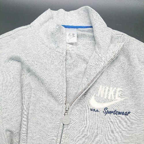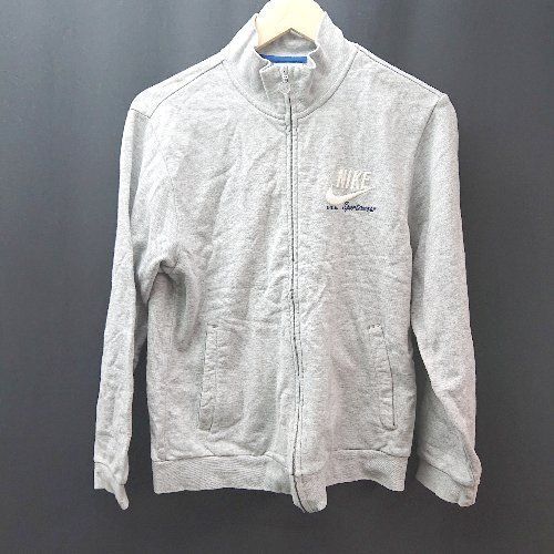 ◇ NIKE ナイキ 刺? ブランドロゴ ジップアップ ストレッチ シンプル オシャレ 長袖 ジャケット サイズL グレー系 メンズ E