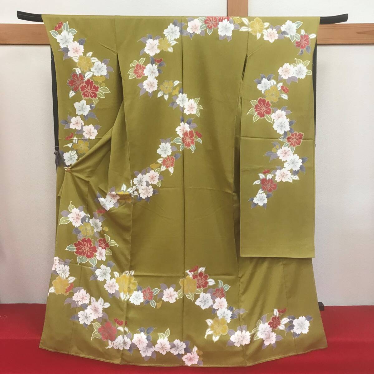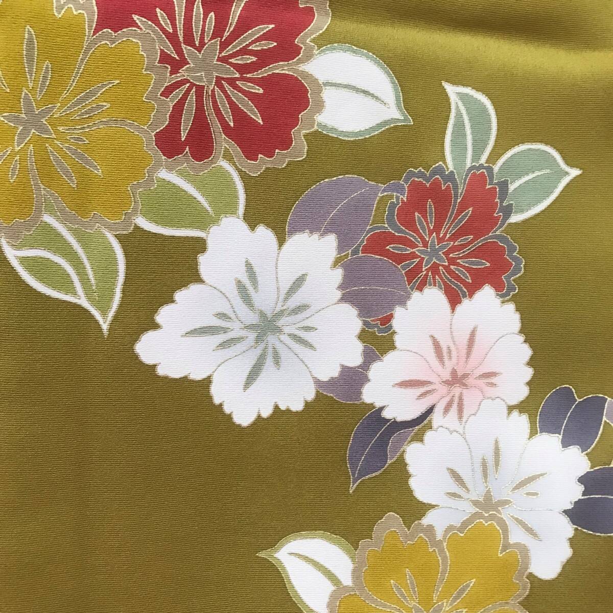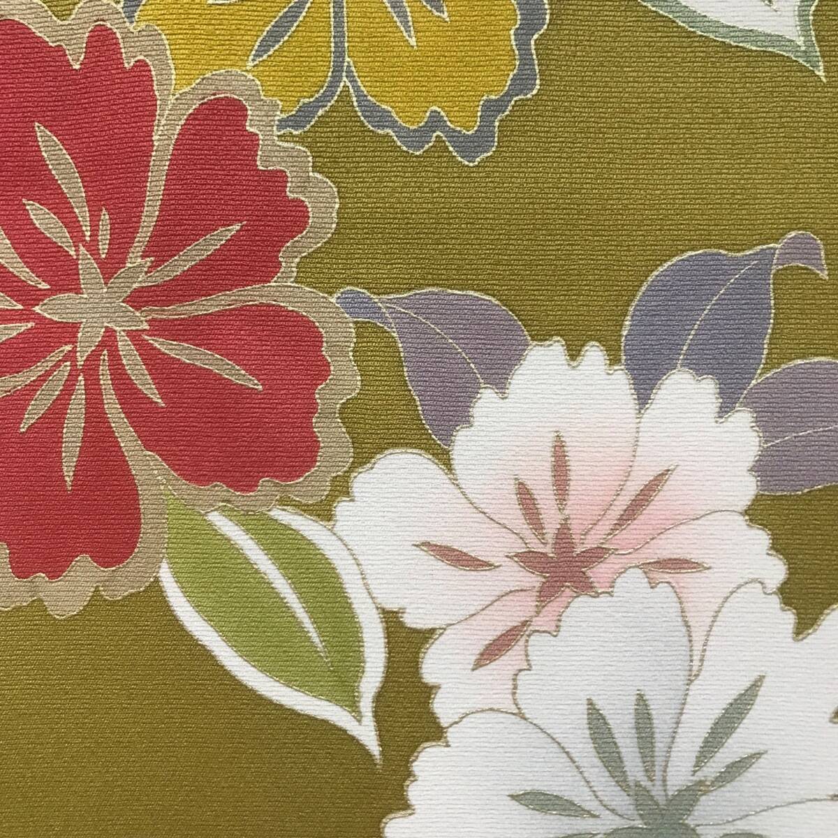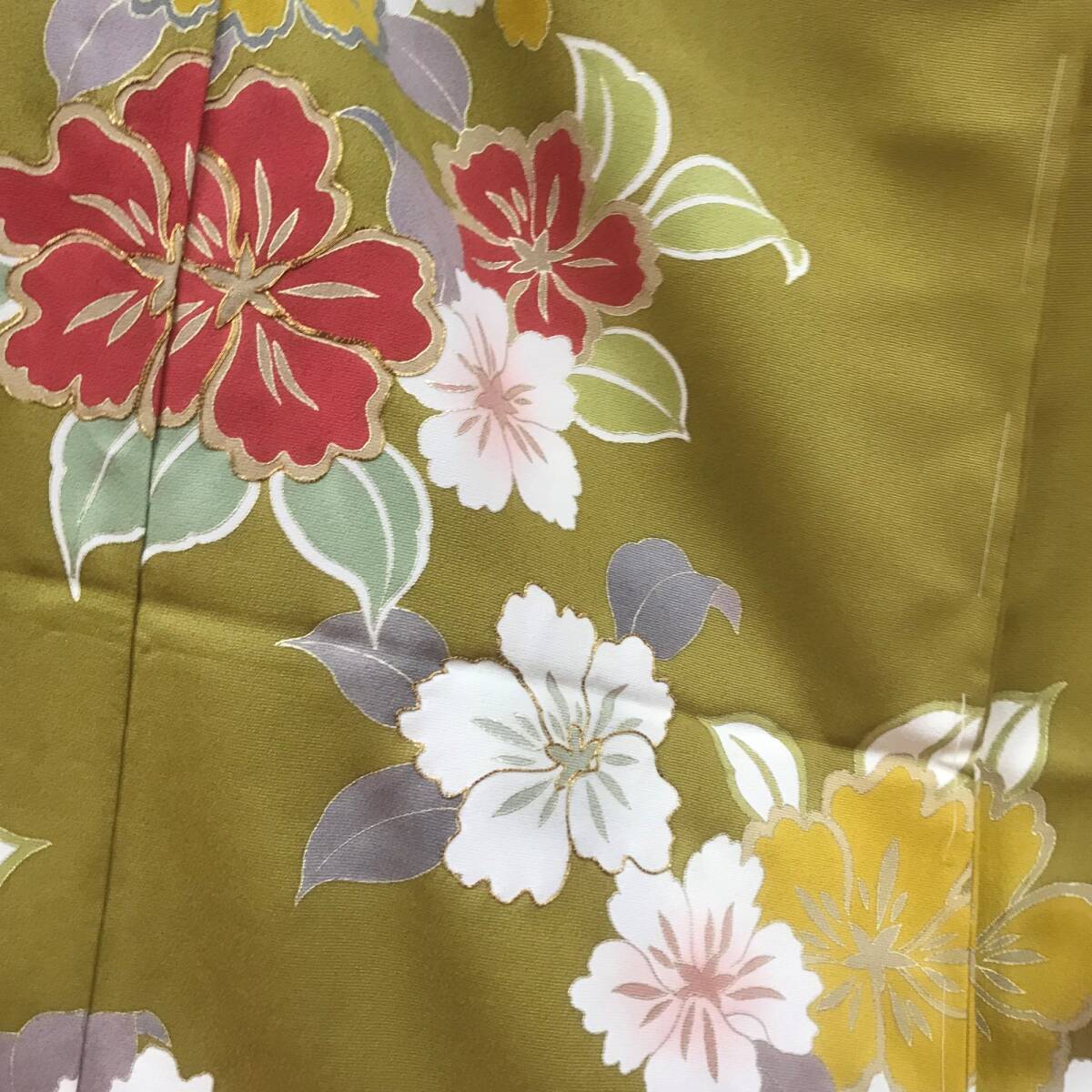 振袖 6-16 連花柄 金茶系 ちりめん 未仕立て