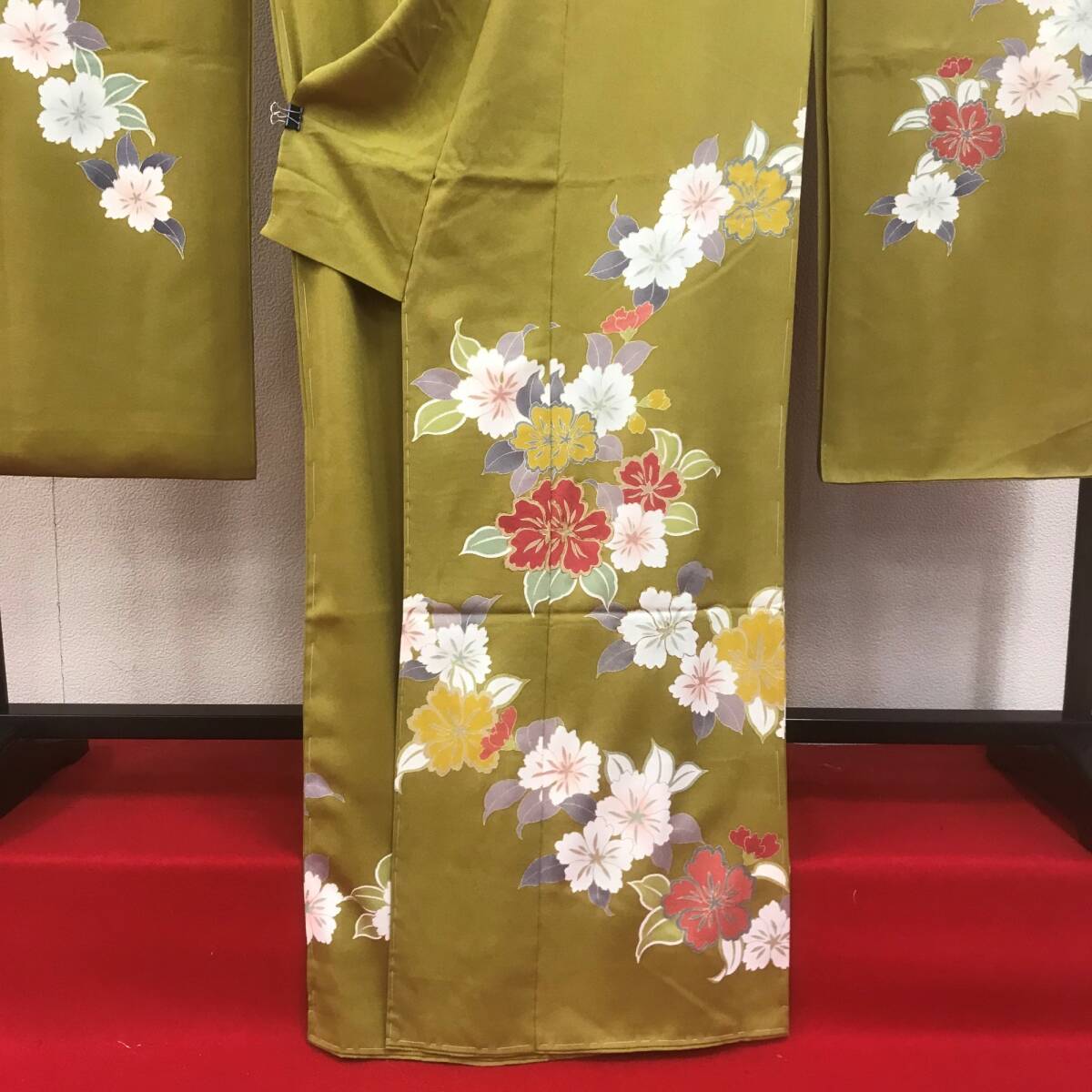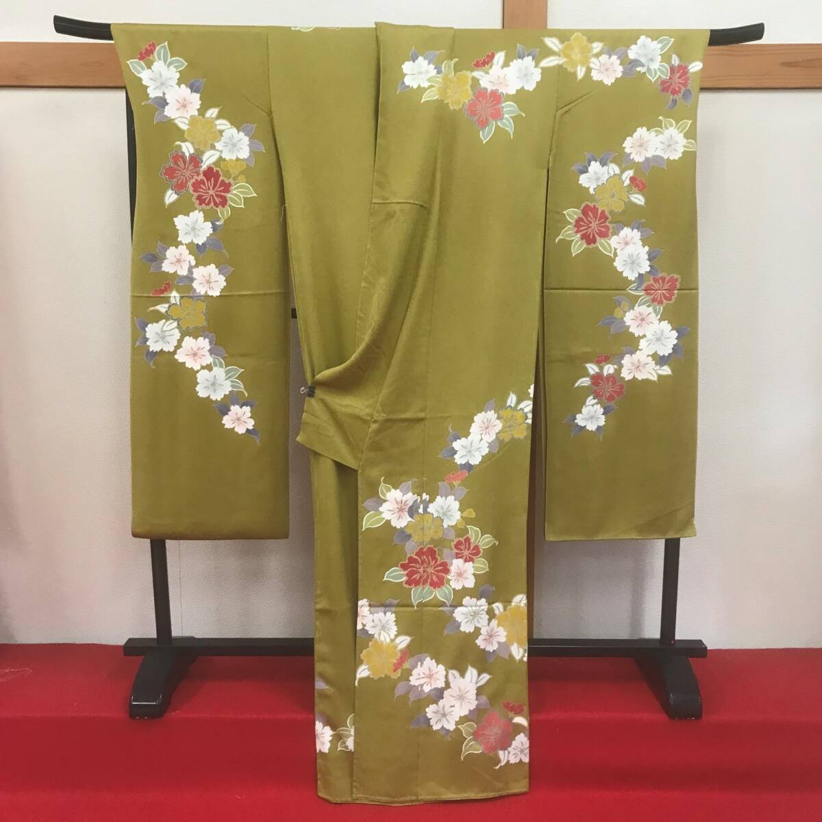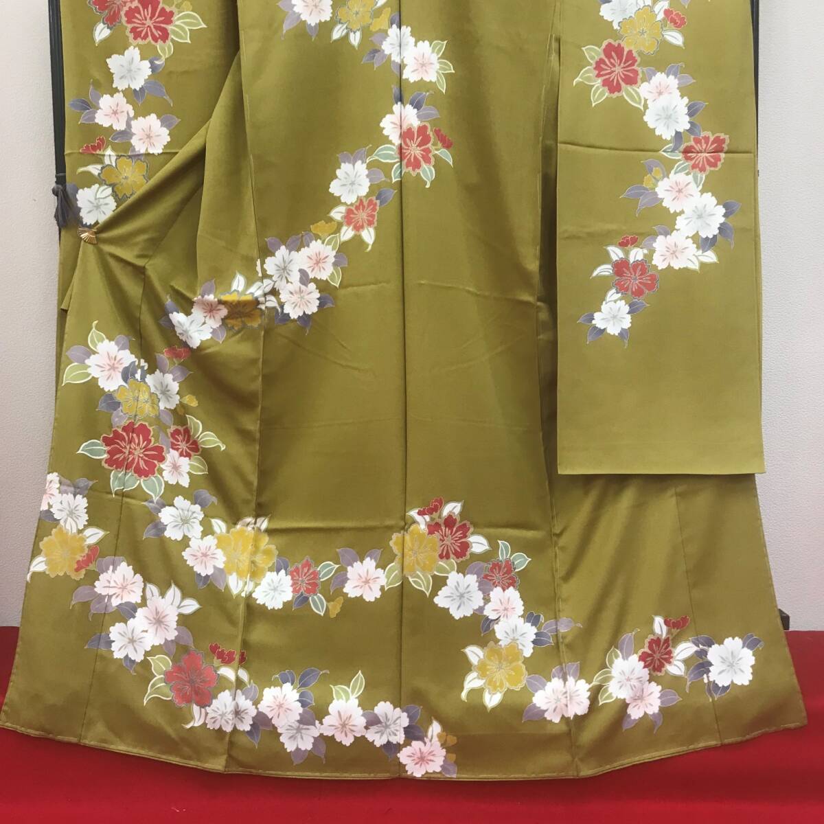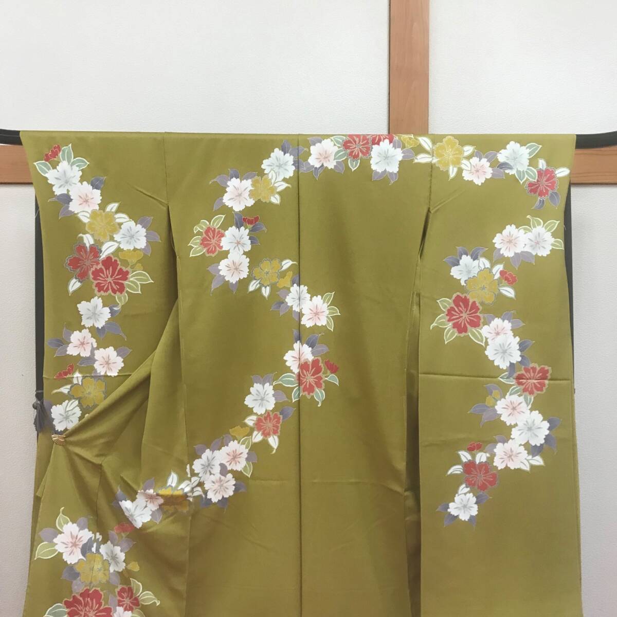 振袖 6-16 連花柄 金茶系 ちりめん 未仕立て
