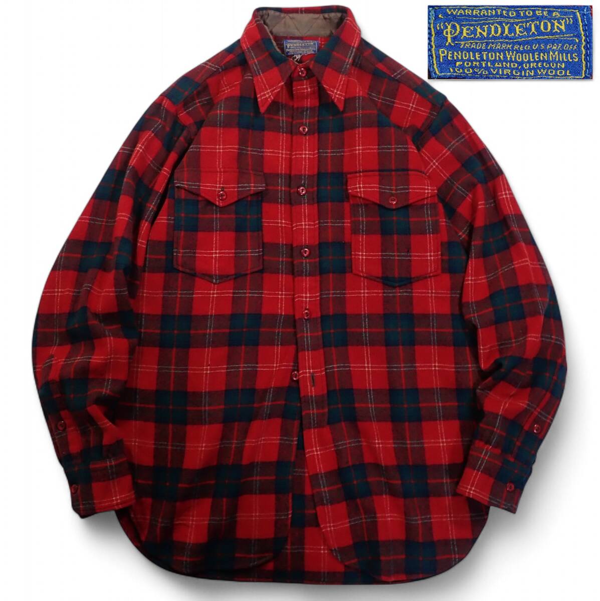 6348/希少 PENDLETON 40sビンテージ ウール 長袖シャツ L●フラップポケット ペンドルトン ヴィンテージ●洗濯プレス済●古着