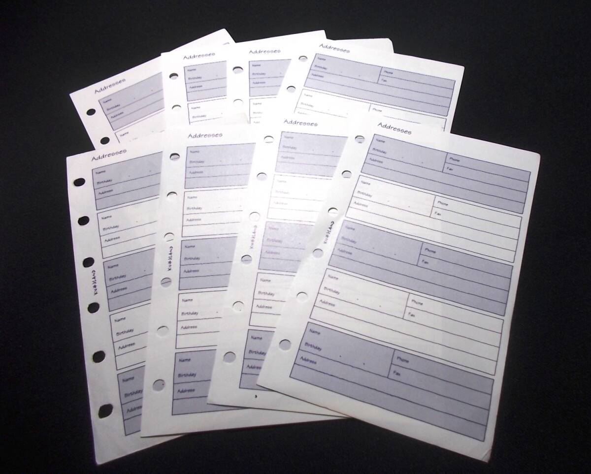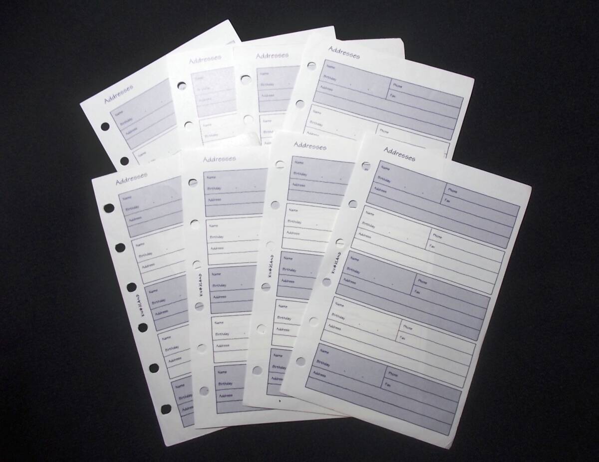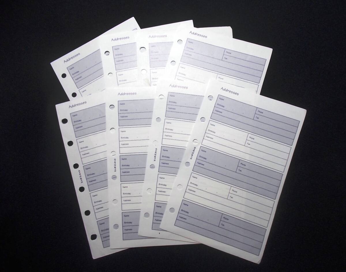 システム手帳用リフィル★アドレス帳8枚(12.8×8.2cm)★B7/ミニ6穴タイプ/ポケットサイズ★6穴ルーズリーフ バインダー★