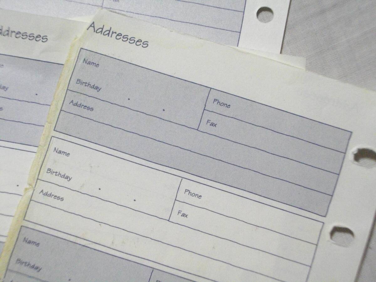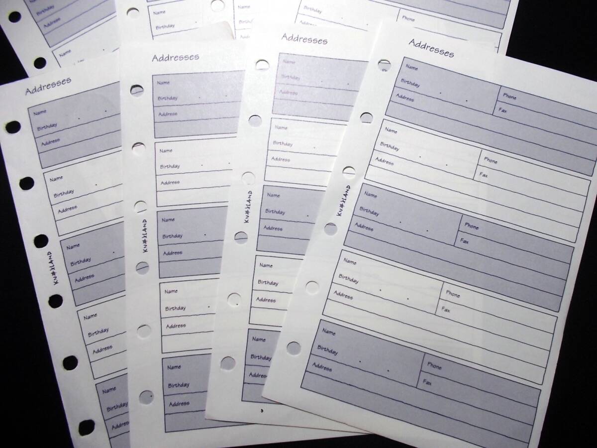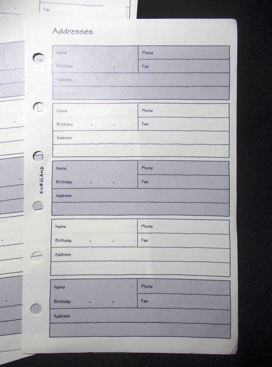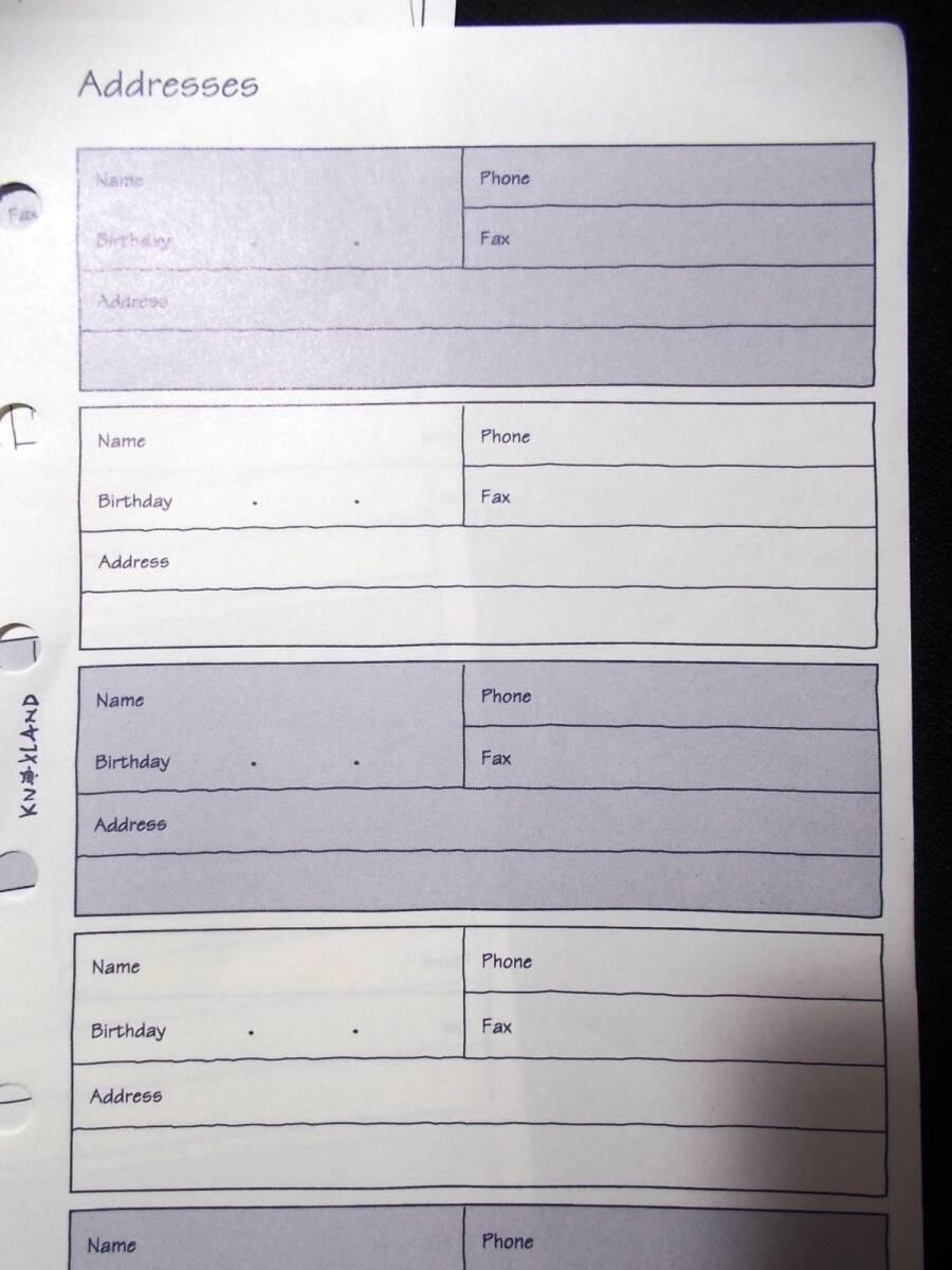 システム手帳用リフィル★アドレス帳8枚(12.8×8.2cm)★B7/ミニ6穴タイプ/ポケットサイズ★6穴ルーズリーフ バインダー★
