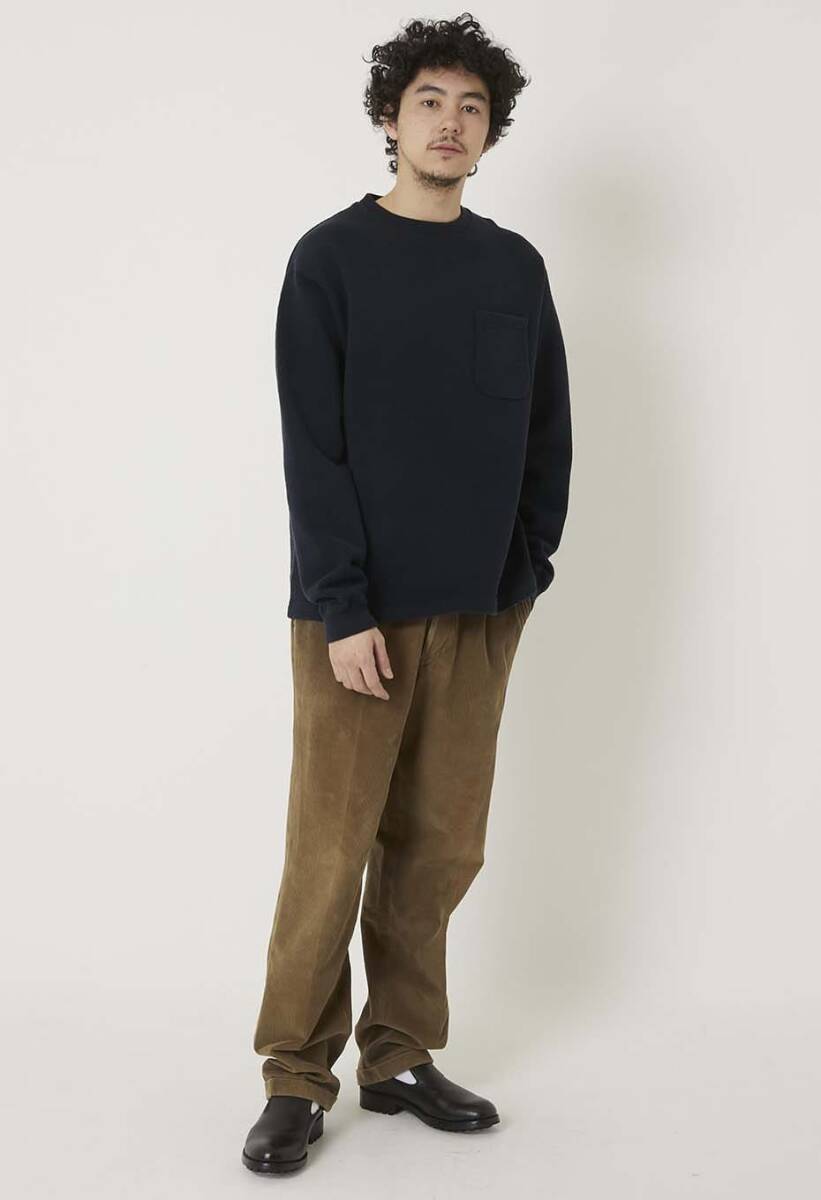 しっかりとした肉厚な生地感でシャリっとした適度にドライタッチな肌触り。生地感を活かしたゆったりしたシルエットが雰囲気の良い一枚です。