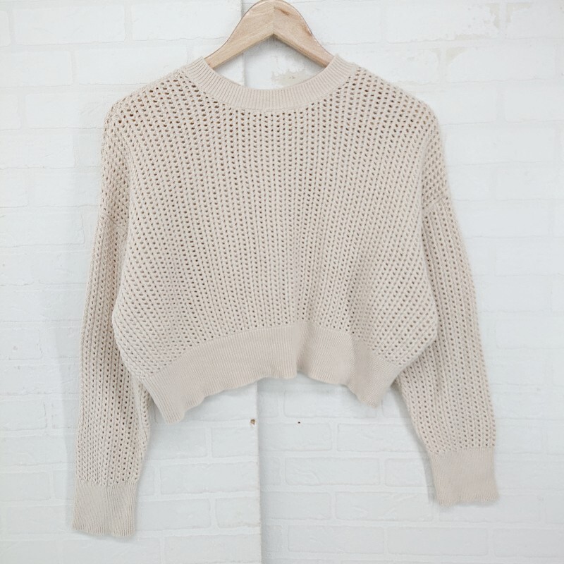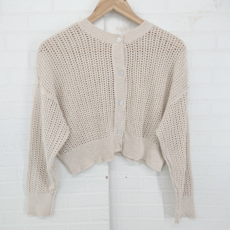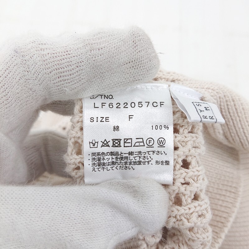◇ LOWRYS FARM ローリーズファーム コットン ニット 透かし編み 2WAY 長袖 カーディガン サイズF ベージュ レディース P