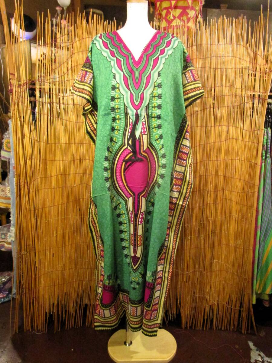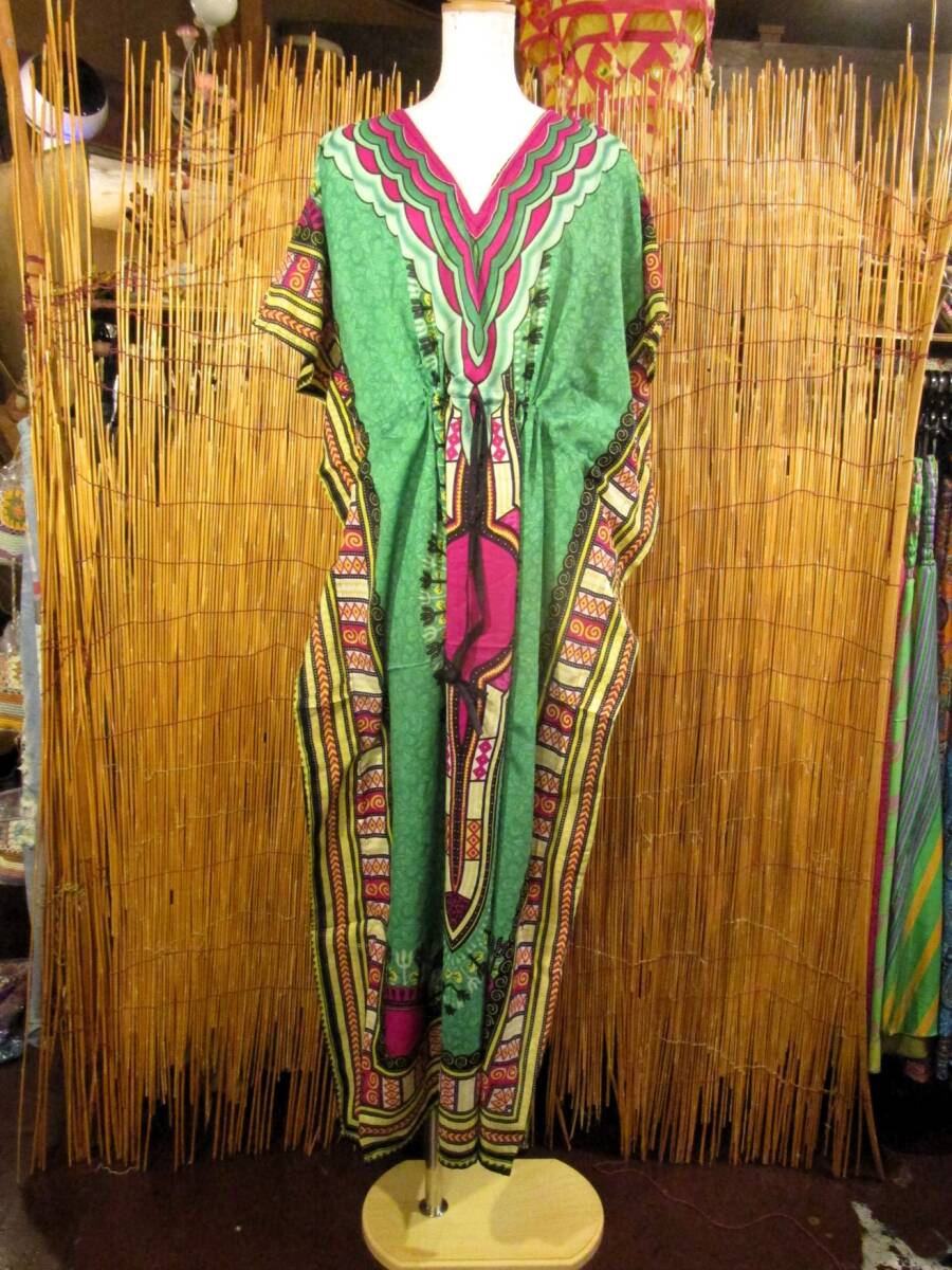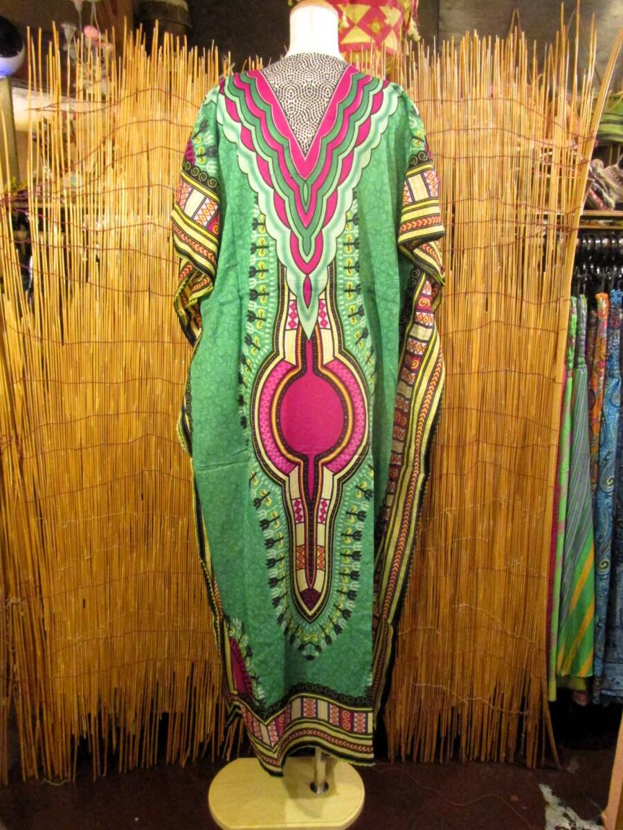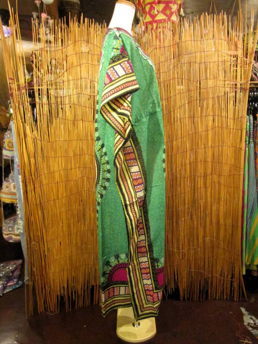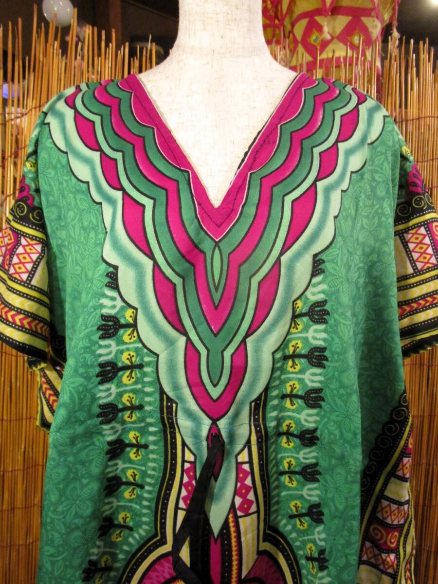 【送料込み/SALE】訳あり 薄手ビスコース素材 ゆったりサイズ ダシキプリント ガラベーヤ ポンチョ風 マキシ丈 ワンピース MAJAM