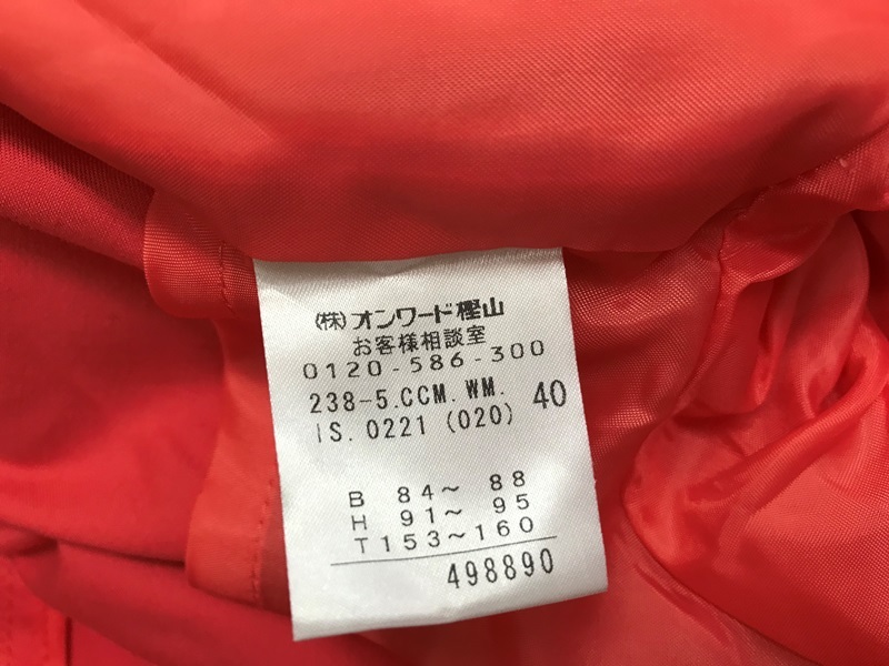 3369 レディース 【 自由区 オンワード樫山 】トレンチコート  サイズ:40 色:オレンジ