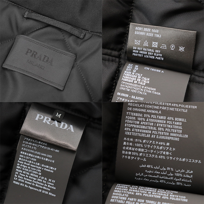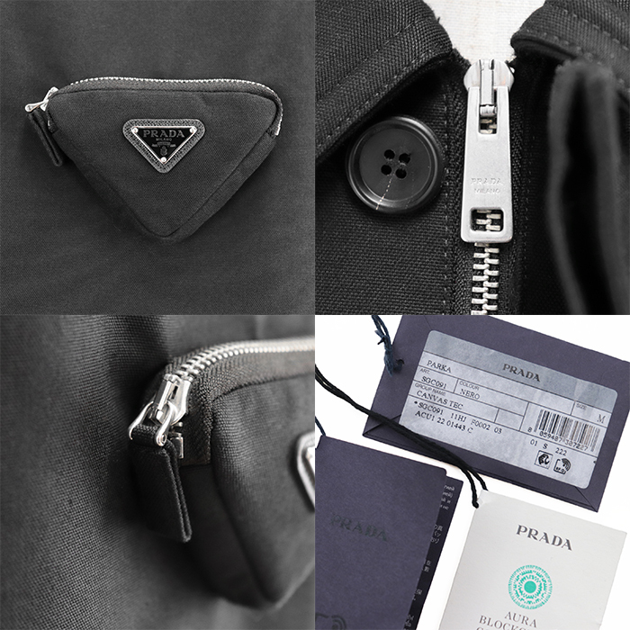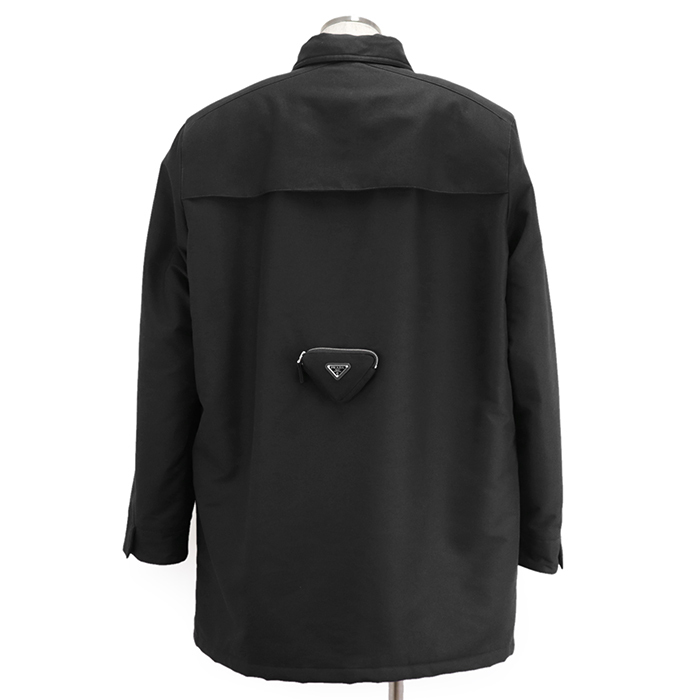 SALE【極美品】プラダ 2022年製 トライアングル プレート ポケット ジャケット 中綿 コート アウター メンズ サイズ M 黒 イタリア製 PRADA