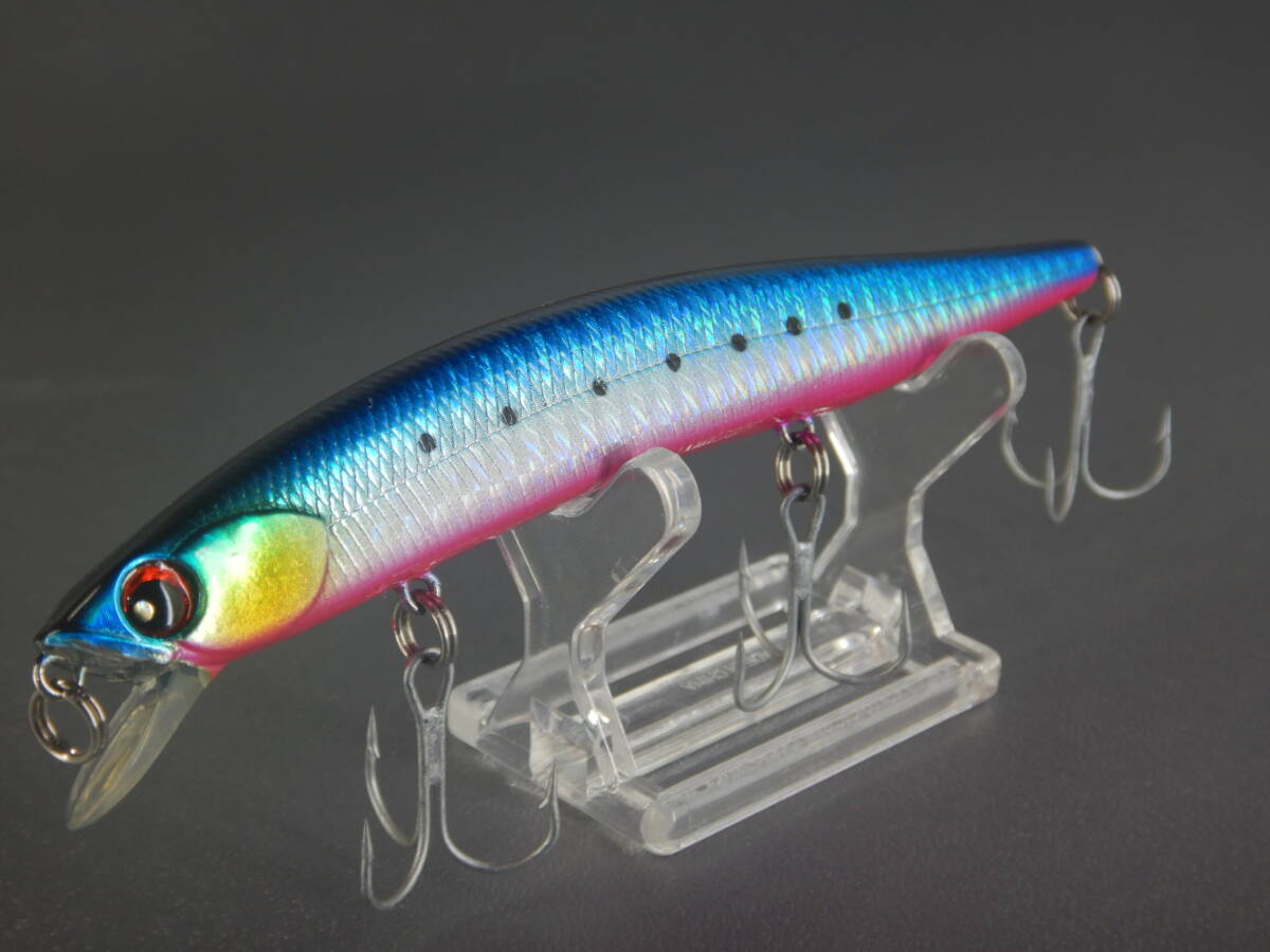 特徴:スローリトリーブでも高速巻きでも姿勢を崩さず泳ぎます。トゥイッチを入れるとキビキビ左右に動きます。安定した姿勢で浅場を攻めます!