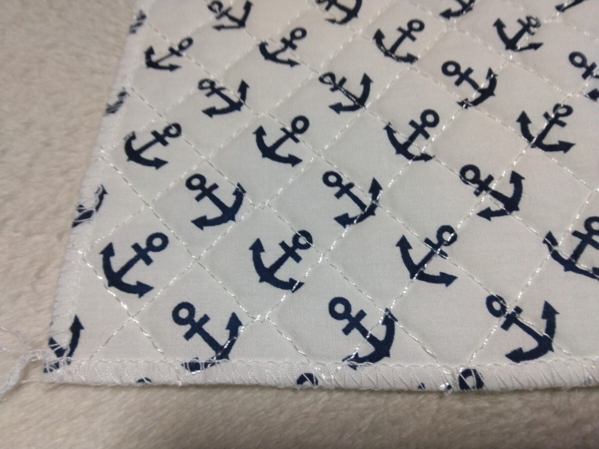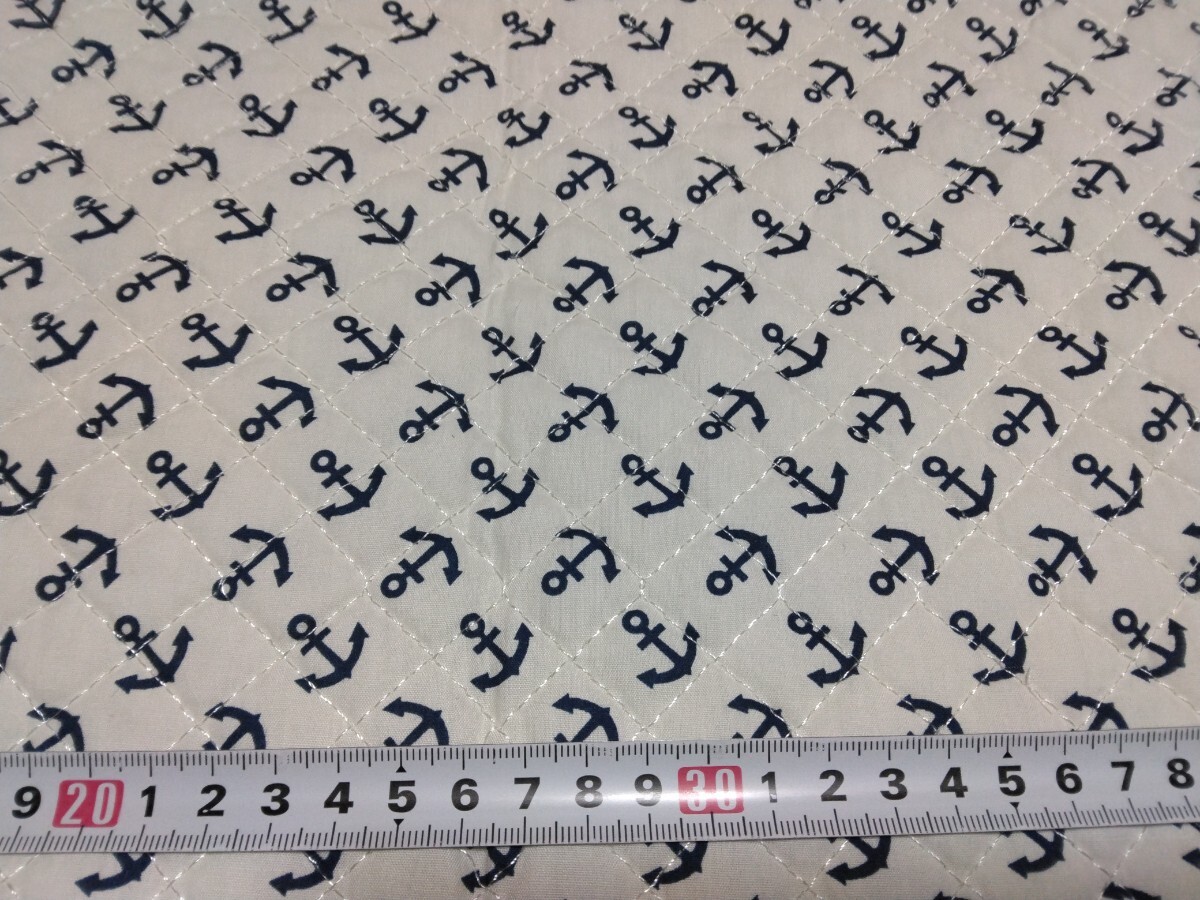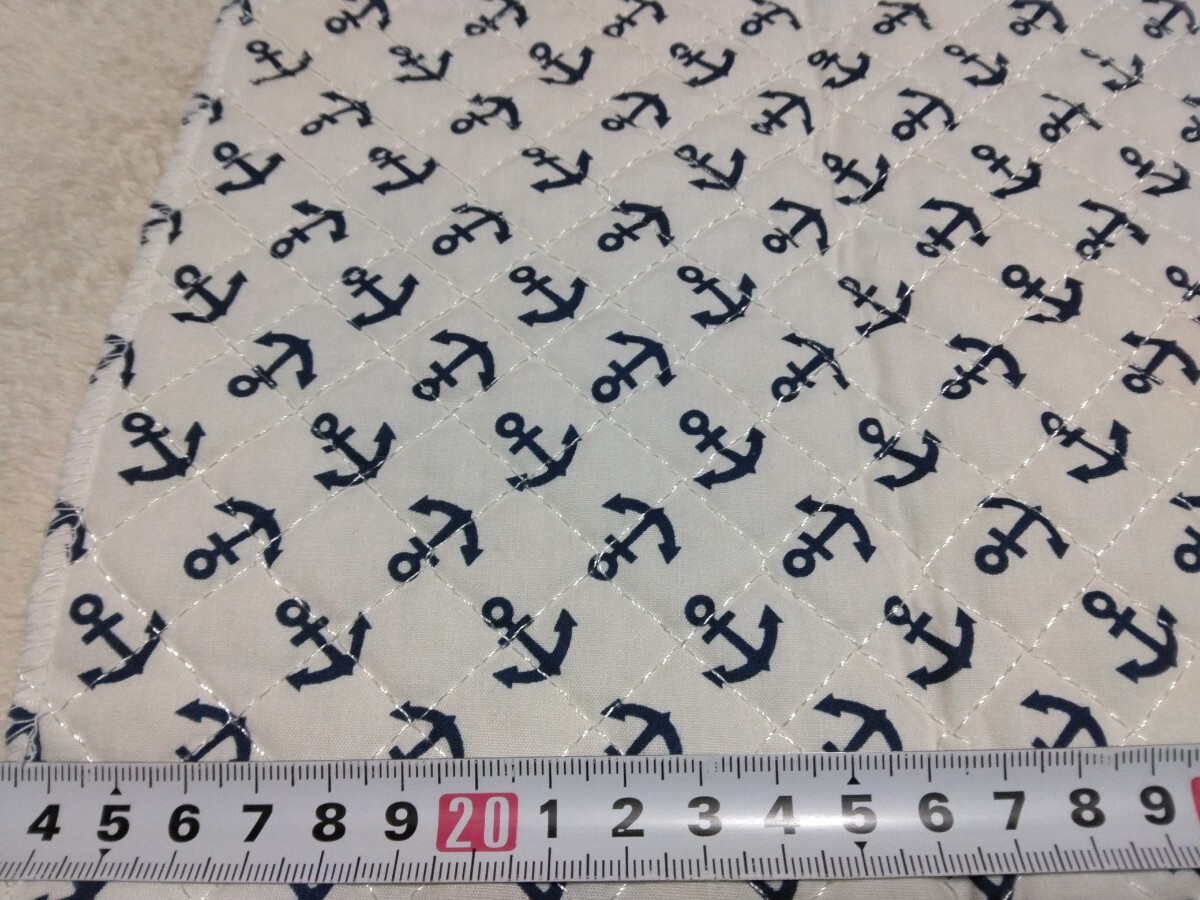 イカリ柄のキルティング生地のハギレです。50×48センチ×2枚セットの現品限りです。端の処理は購入時よりされていました。