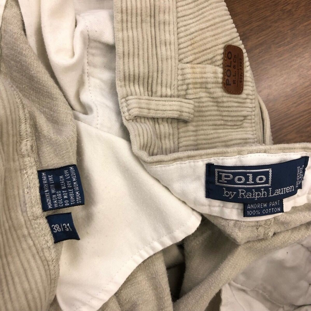 【GA123】POLO by Ralph Lauren W38 L31 ツータック コーデュロイパンツ ベージュ メンズブランド古着 ポロ ラルフローレン 送料無料