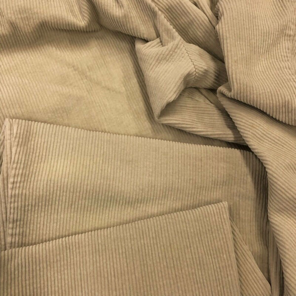 ●ウエスト→フロントボタンやジップは閉じ、ウエストの表中心と後ろ中心を合わせて机や床など平面な場所に置き、フラットに測れるよう生地を軽く手で押さえ、平置きしたパンツの左右端の最上部を計測、実寸した数値×2の表記をしてます。