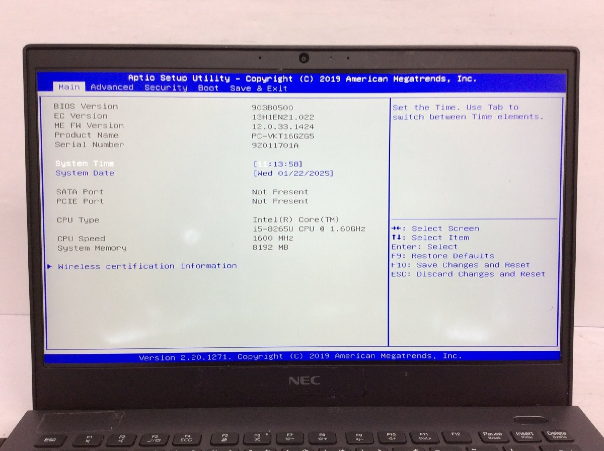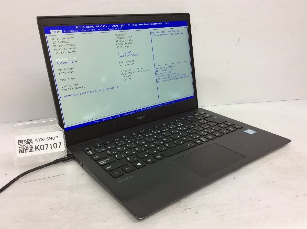 ジャンク/ NEC PC-VKT16GZG5 Intel Core i5-8265U メモリ8.19GB ストレージ無し 【K07107】