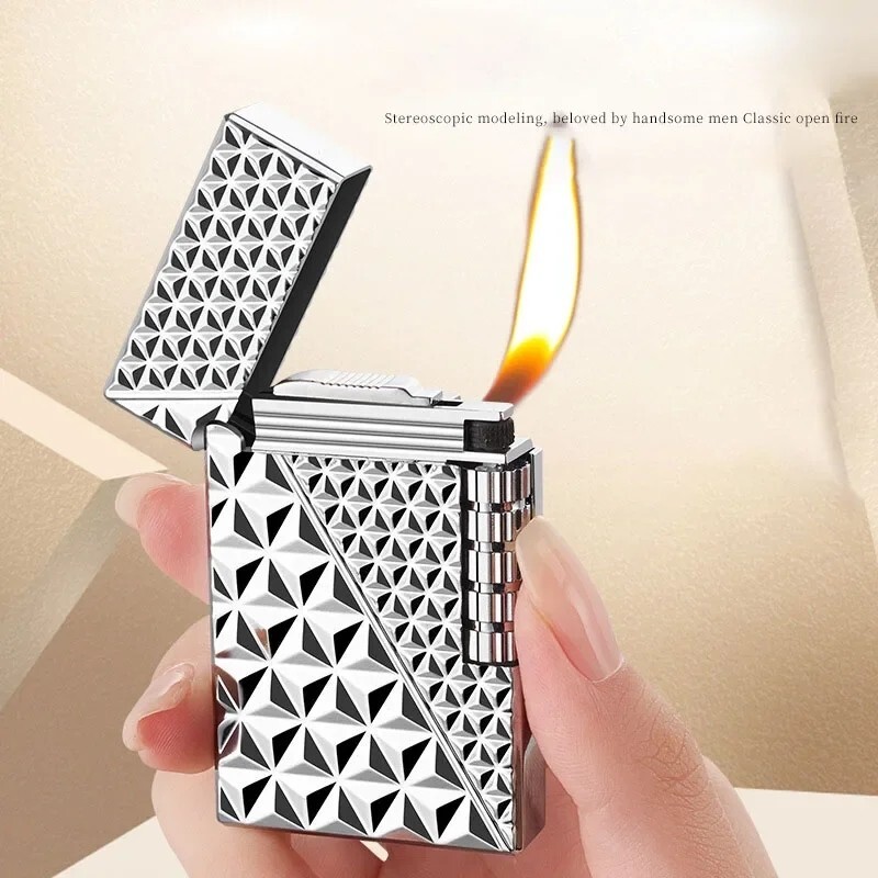 両面 ダイヤモンドヘッド ガスライター 快音 が迫力満点なデザインのフリントサイドローラー式ガスライターです。