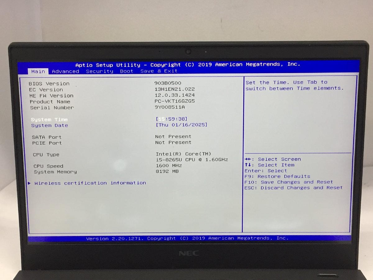ジャンク/ NEC PC-VKT16GZG5 Intel Core i5-8265U メモリ8.19GB ストレージ無し 【K06856】