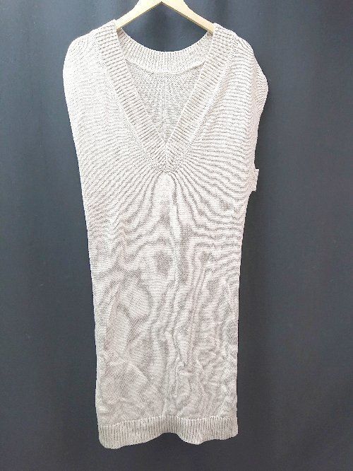 ◇ GLOBAL WORK 2WAY ロング丈 シーズンレス ニットベスト サイズF ベージュ レディース E