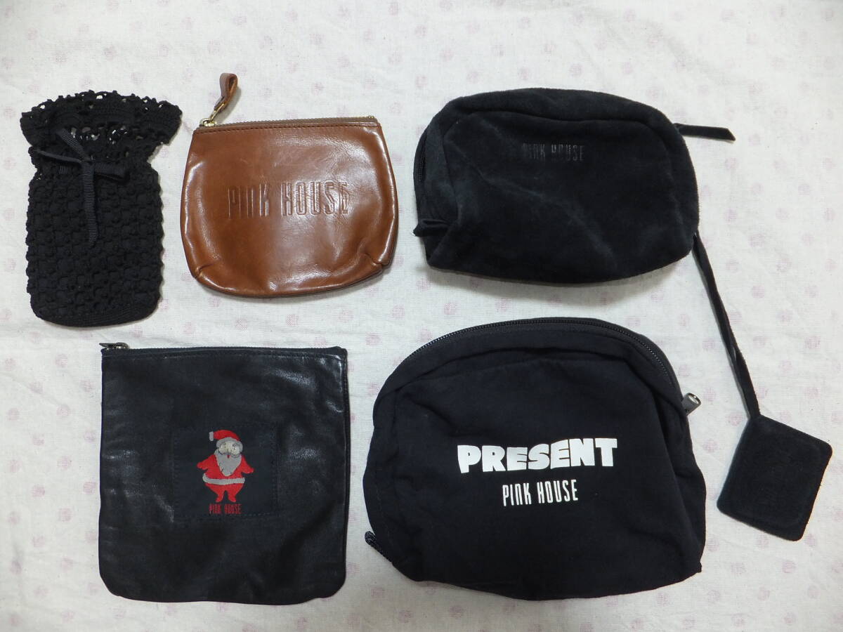 値下! PINK HOUSE ピンクハウス まとめ ポーチ 小物入れ チャック式 レース 黒 茶系 サンタクロース ワッペン 革 KANEKO ISAO カネコイサオ
