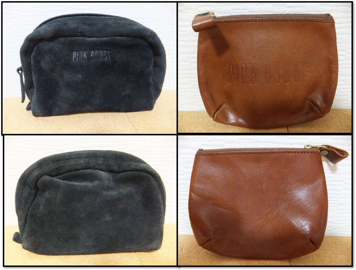中古 PINK HOUSE ピンクハウス まとめ ポーチ 小物入れ 鏡付 チャック式 レース 5点セット ブラック ブラウン 黒 茶系 サンタクロース ワッペン 革 KANEKO ISAO カネコイサオ 小銭入れ レトロ ⑫