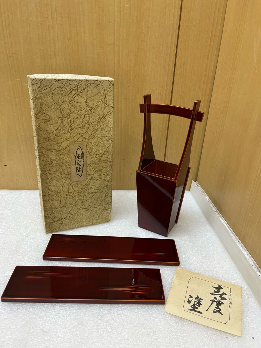 RE1834 春慶塗 花器 高さ約28cm 花瓶 花入 花生 花活 敷板 漆芸 木製 茶道具 和モダン 和風 伝統工芸品 箱付