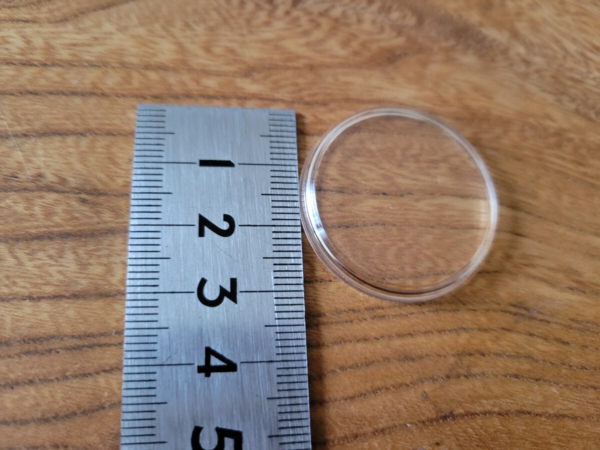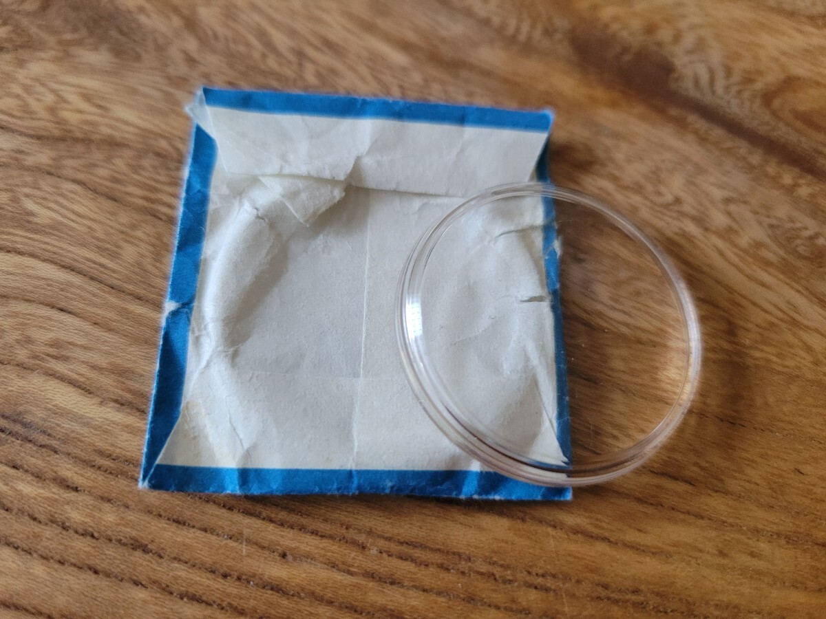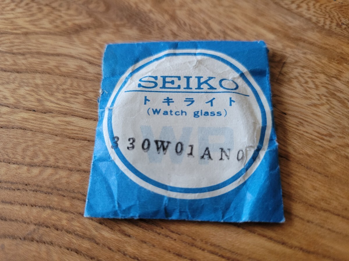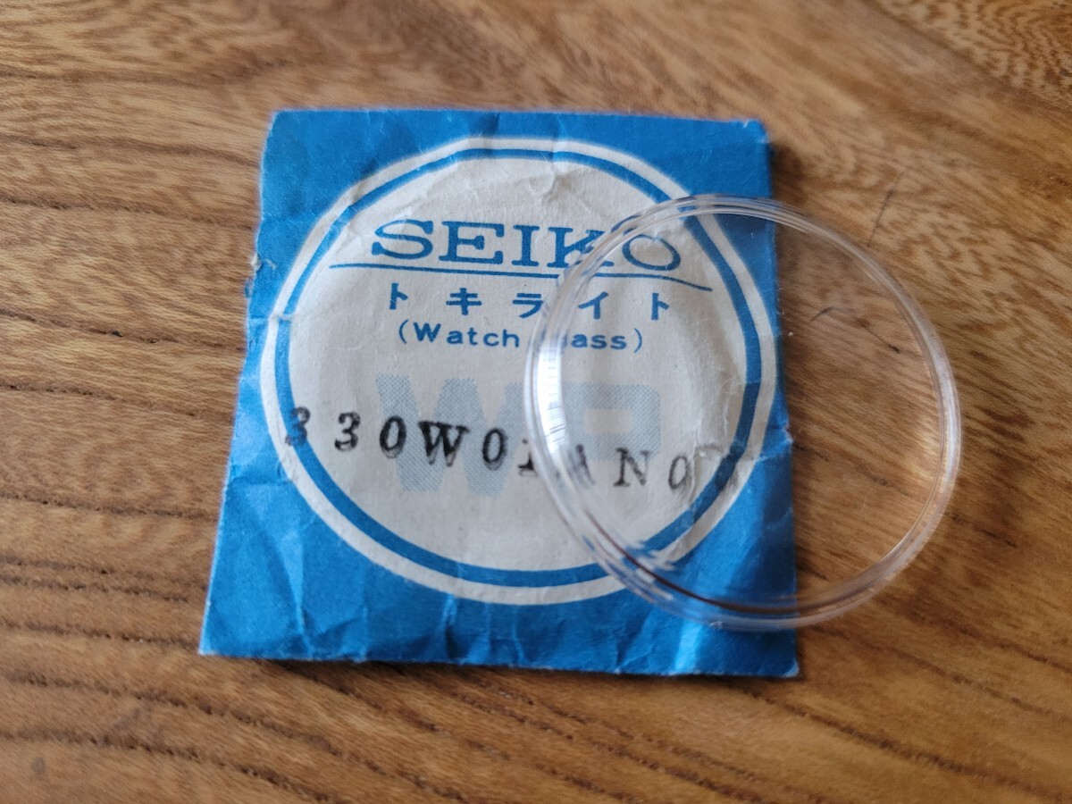 名機キングセイコークロノメーター27石(Ref:4420-9990型)風防の出品です。廃業時計店からの入手です。風防は廃業時計店の未使用品専用保管庫にひとまとめにしてありましたので未使用品扱いとしました。