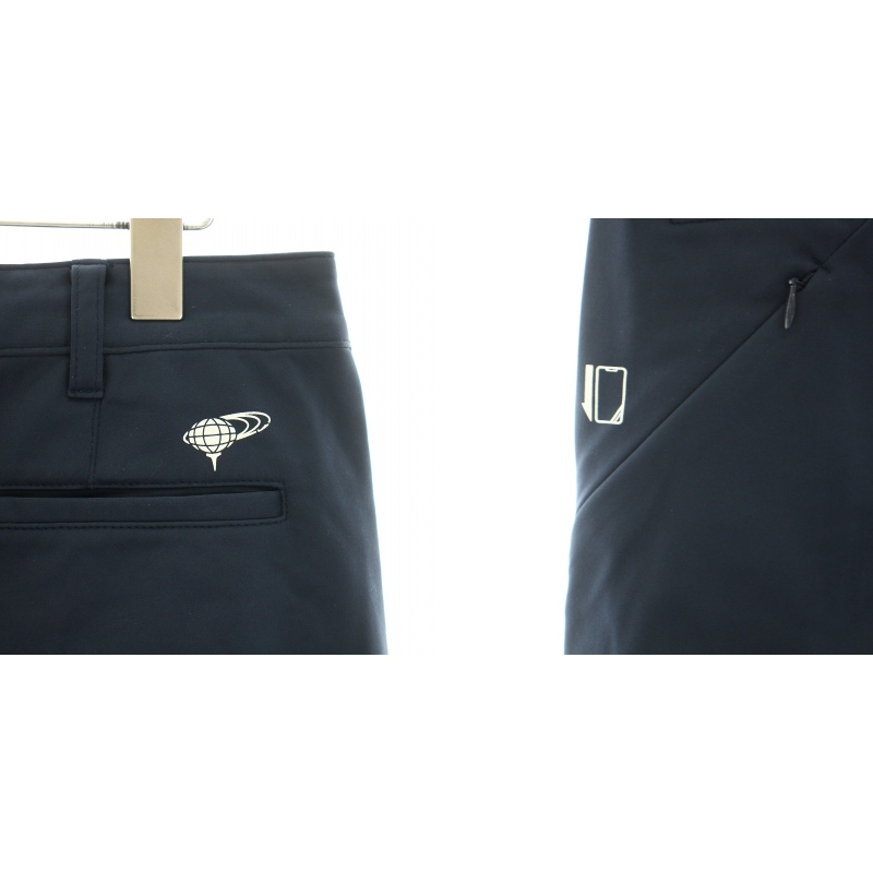 ビームスゴルフ BEAMS GOLF ORANGE LABEL エアシャットストレッチボンディングパンツ ジップフライ ロゴプリント 裏起毛 M 紺 メンズ