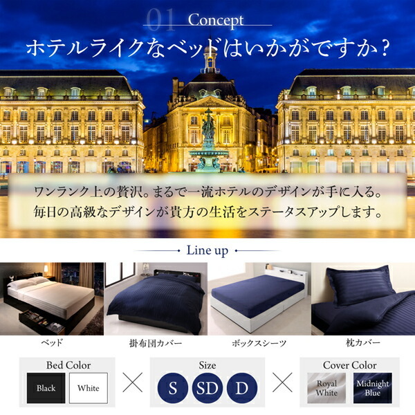 セットで決める 棚・コンセント付本格ホテルライクベッド ベッド用ボックスシーツ セミダブル