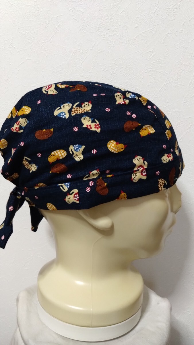 短★バンダナキャップ★ハンドメイド 和柄 ネコ ねこ 猫 紺