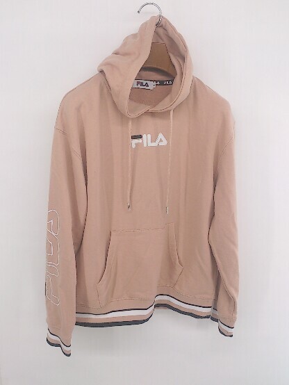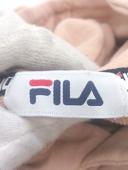 ◇ FILA ロゴ刺繍 ニュアンスカラー 長袖 プルオーバー パーカー サイズM ライトオレンジ ホワイト系 レディース E